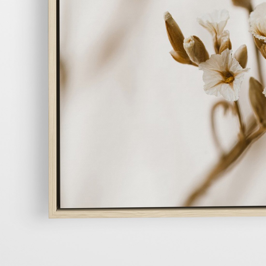 Ten malowniczy obraz na płótnie ukazuje susz kwiatów w stylu susz suche. Ich delikatność i pastelowe odcienie tworzą subtelny i romantyczny nastrój. Dodaj odrobinę vintage'owego uroku i elegancji do swojego wnętrza dzięki temu wyjątkowemu dziełu sztuki.