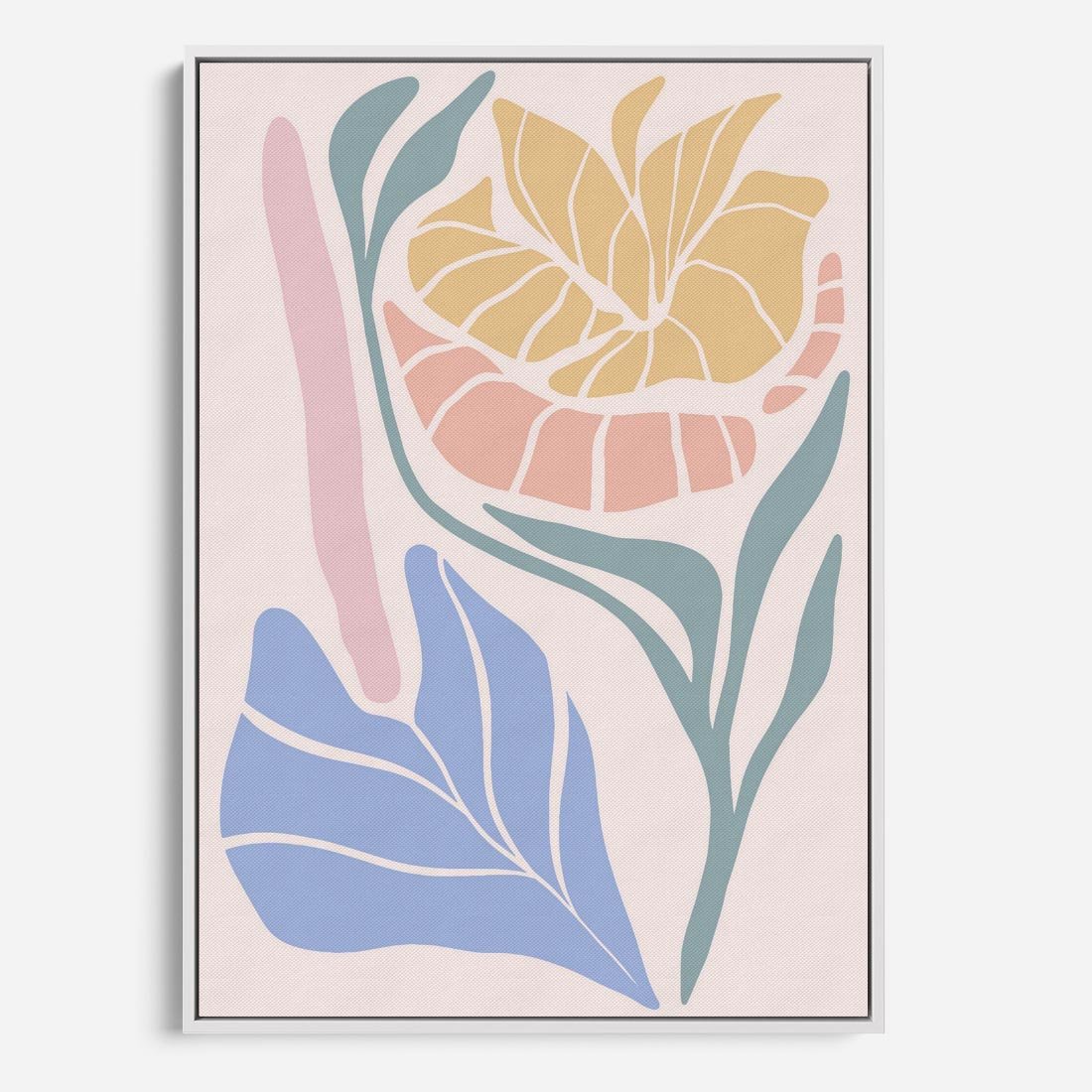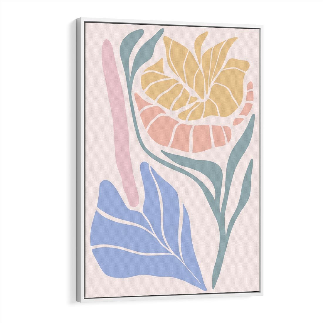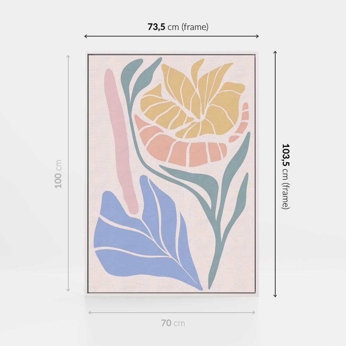 Obraz w ramie 70x100 - Kwiatowe Granice Kształtów - nowoczesny plakat, kwiaty w pastelowych kolorach - rama biała
