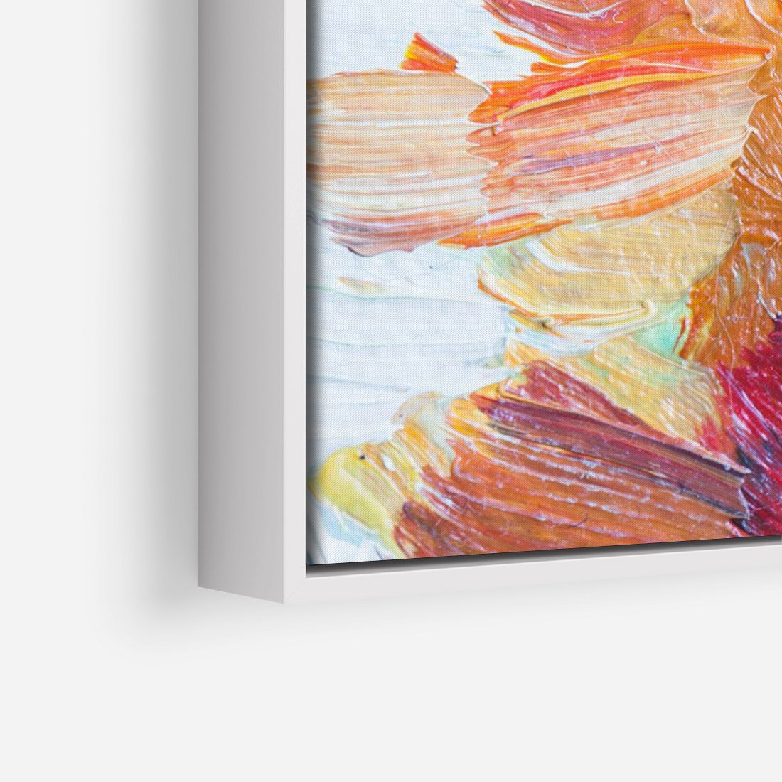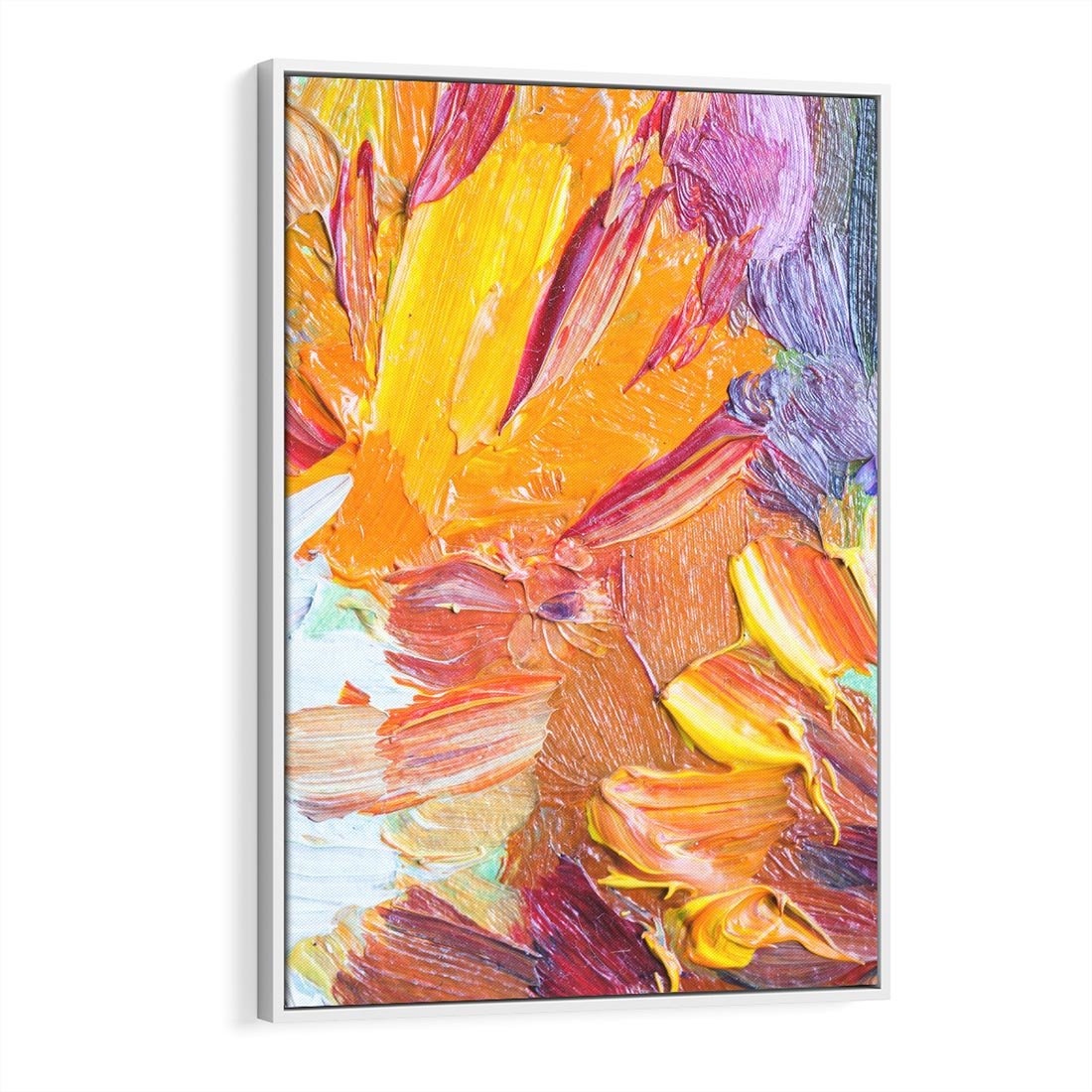 Obraz w ramie 70x100 - Kwiatowe Harmonie - zbliżenie na obraz olejny, gruba warstwa farby - rama biała