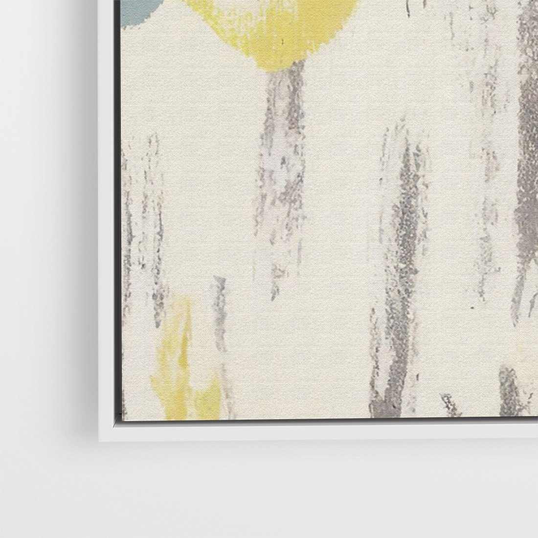 Zachwycający obraz z malowanymi dużymi kwiatami w kolorach żółtym, niebieskim i szarym. Abstrakcyjne kompozycje wprowadzą harmonię natury do Twojego wnętrza.