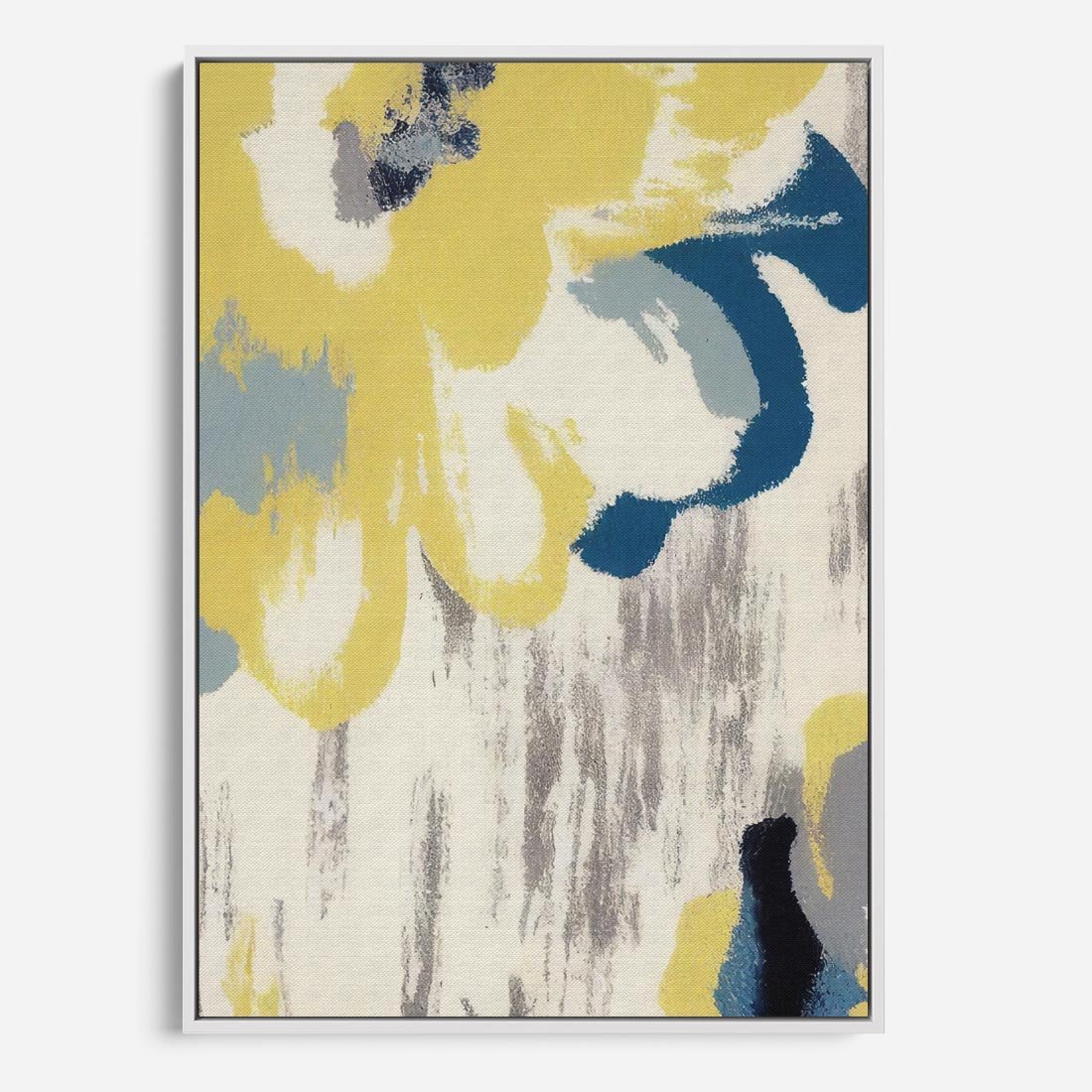 Obraz w ramie 70x100 - Kwiatowe Impresje - malowane duże kwiaty, kolory żółty - rama biała
