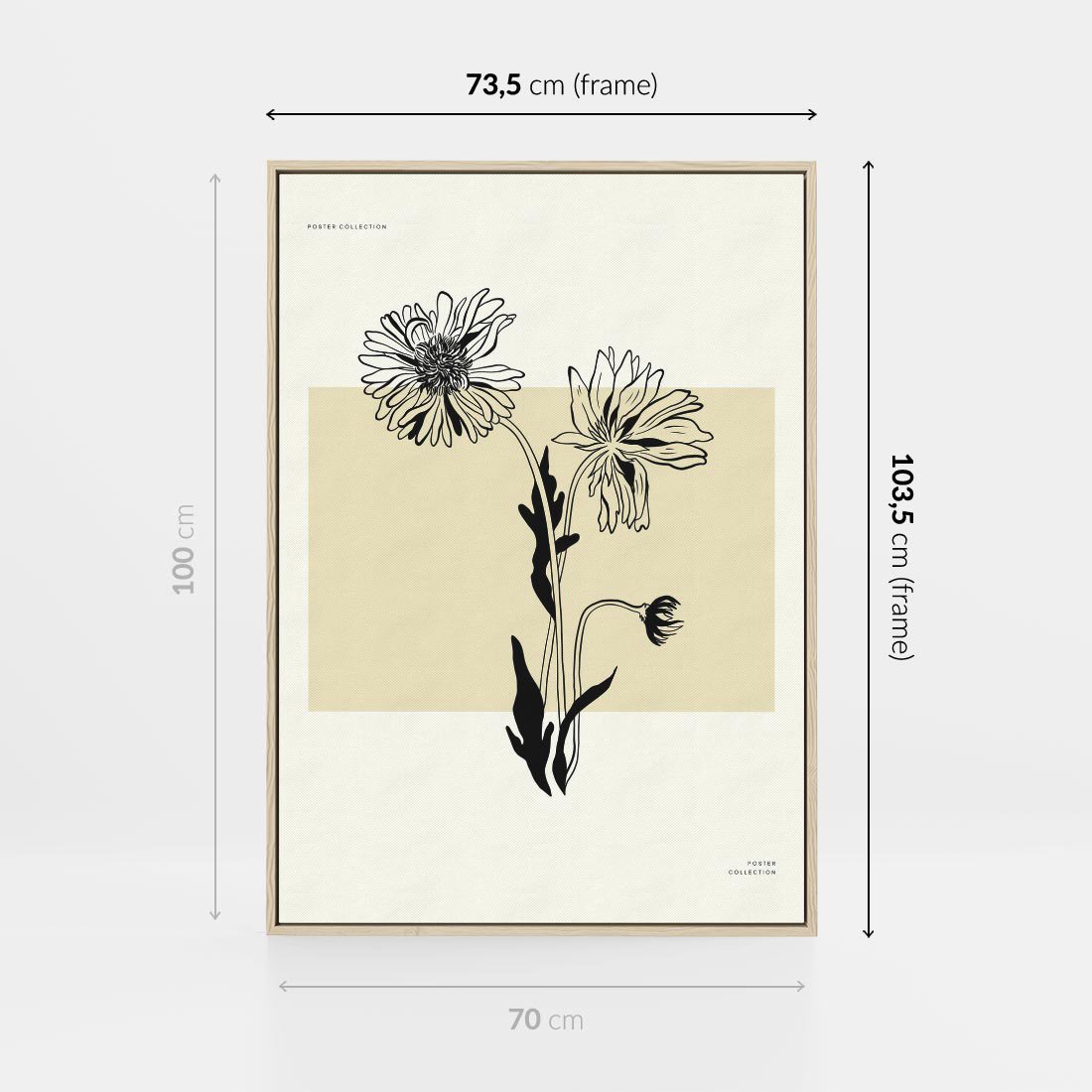 Obraz w ramie 70x100 - Kwiatowe Płótno - kwiaty, typografia - rama drewno