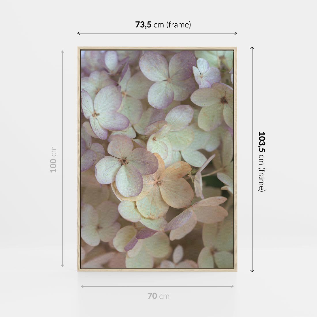 Obraz w ramie 70x100 - Kwiatowy taniec - kwiaty, hortensje - rama drewno