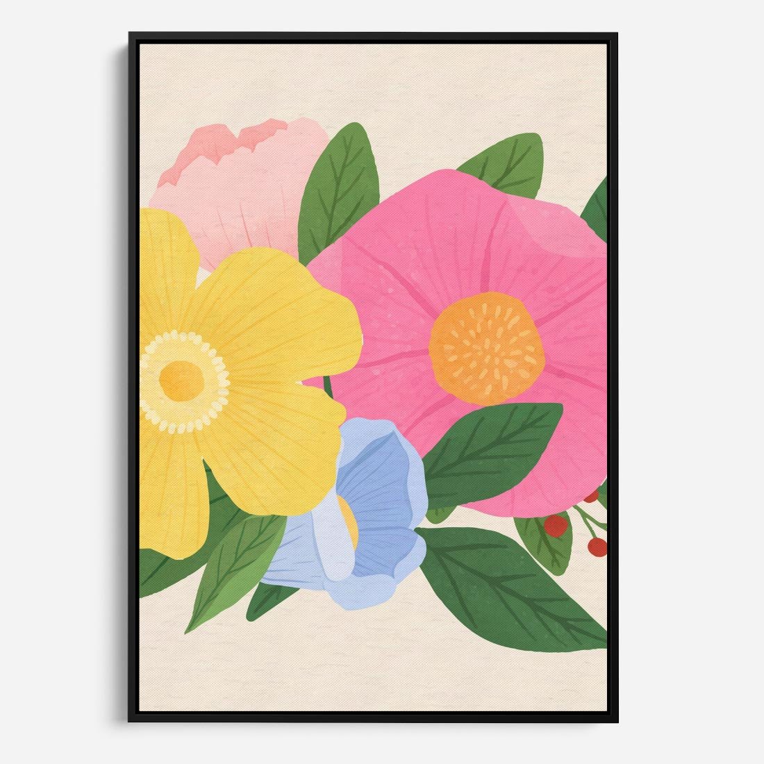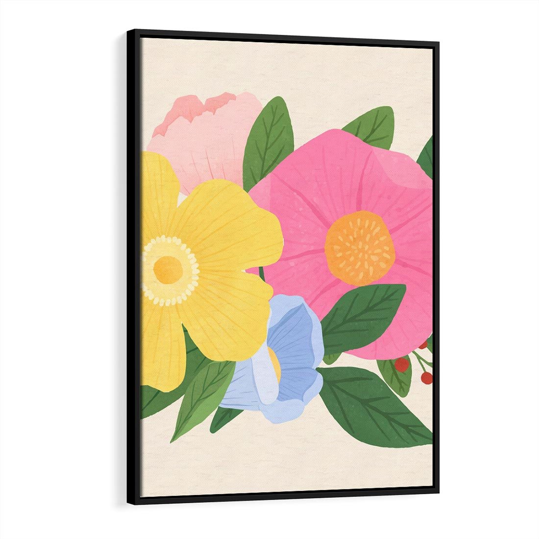 Obraz w ramie 70x100 - Kwiatowy Uśmiech - kwiaty, akwarela - rama czarna