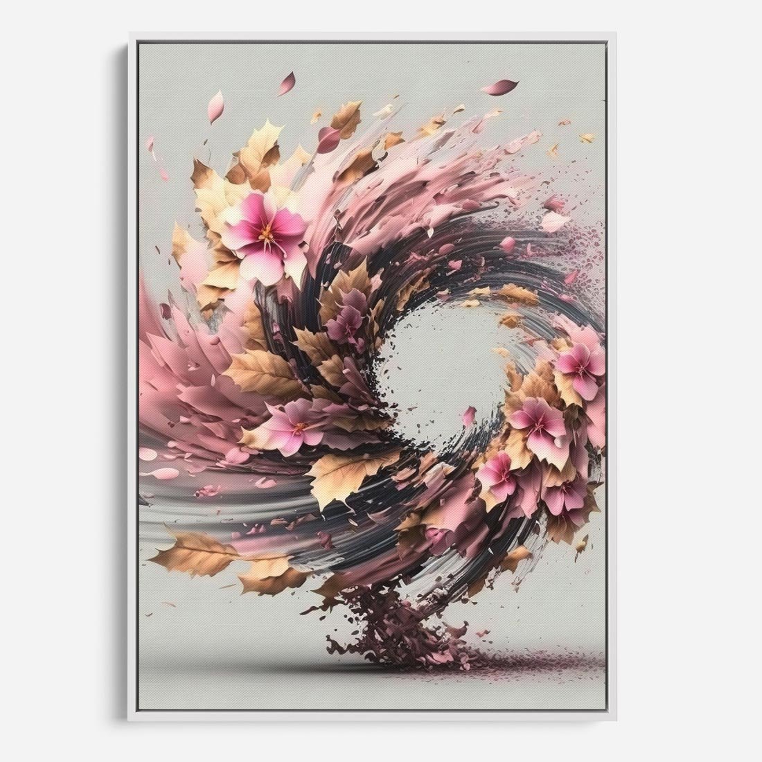 Obraz w ramie 70x100 - Kwiatowy Wir - nowoczesna grafika komputerowa, wir z kwiatów - rama biała