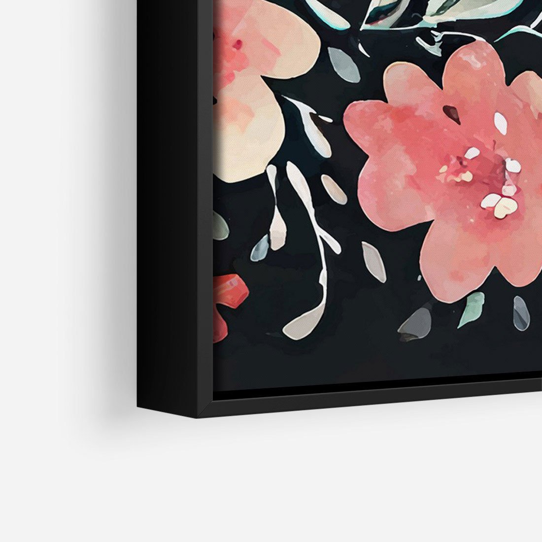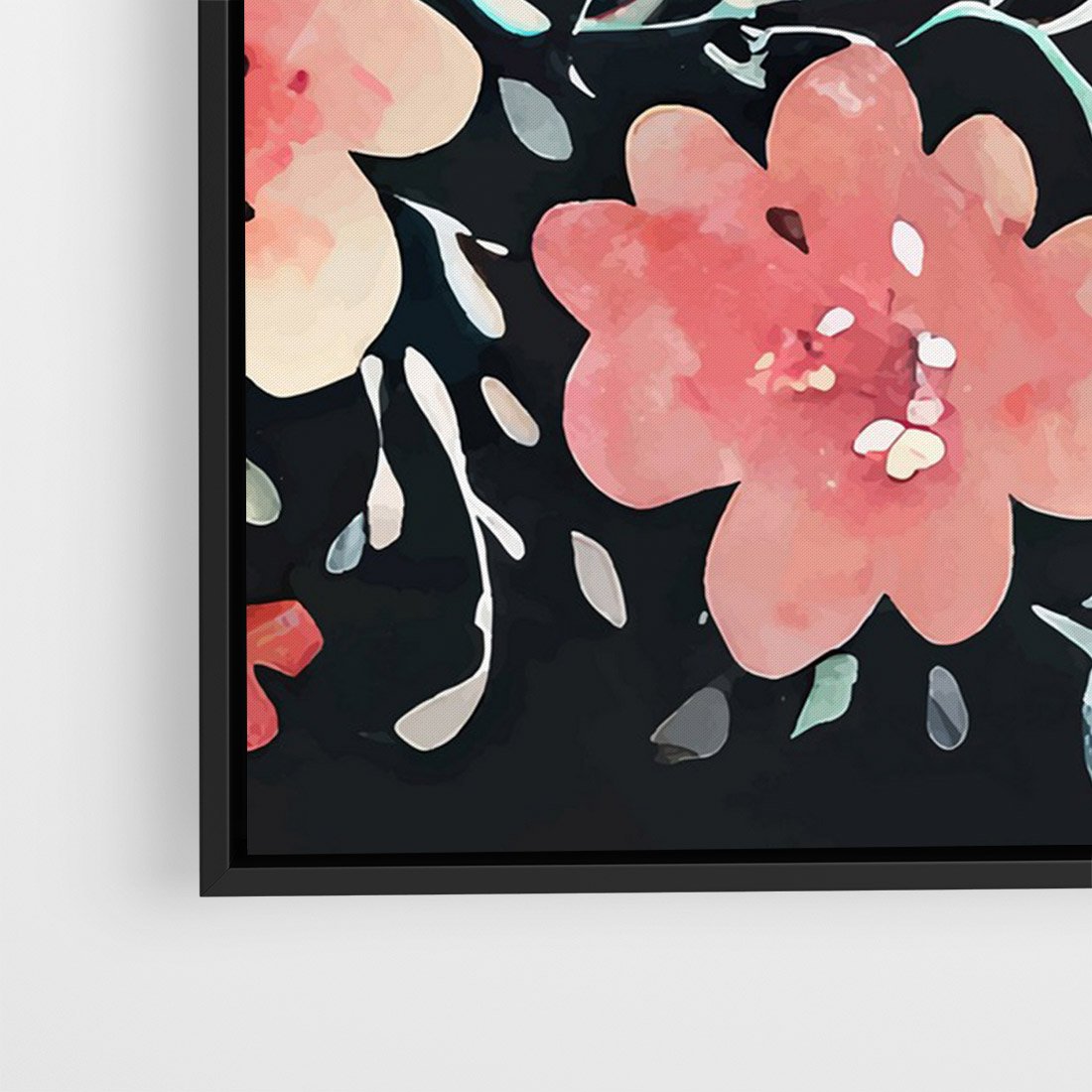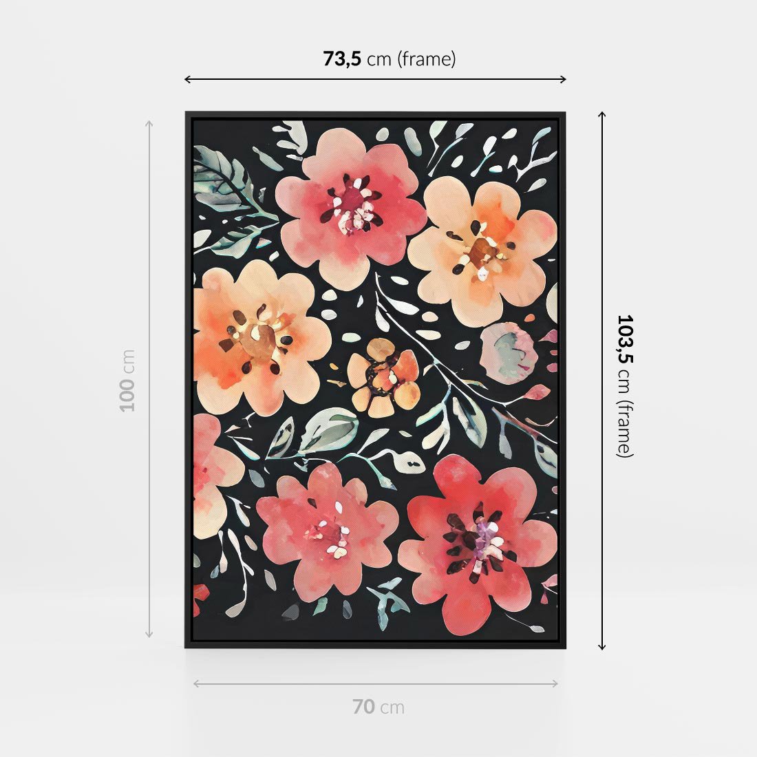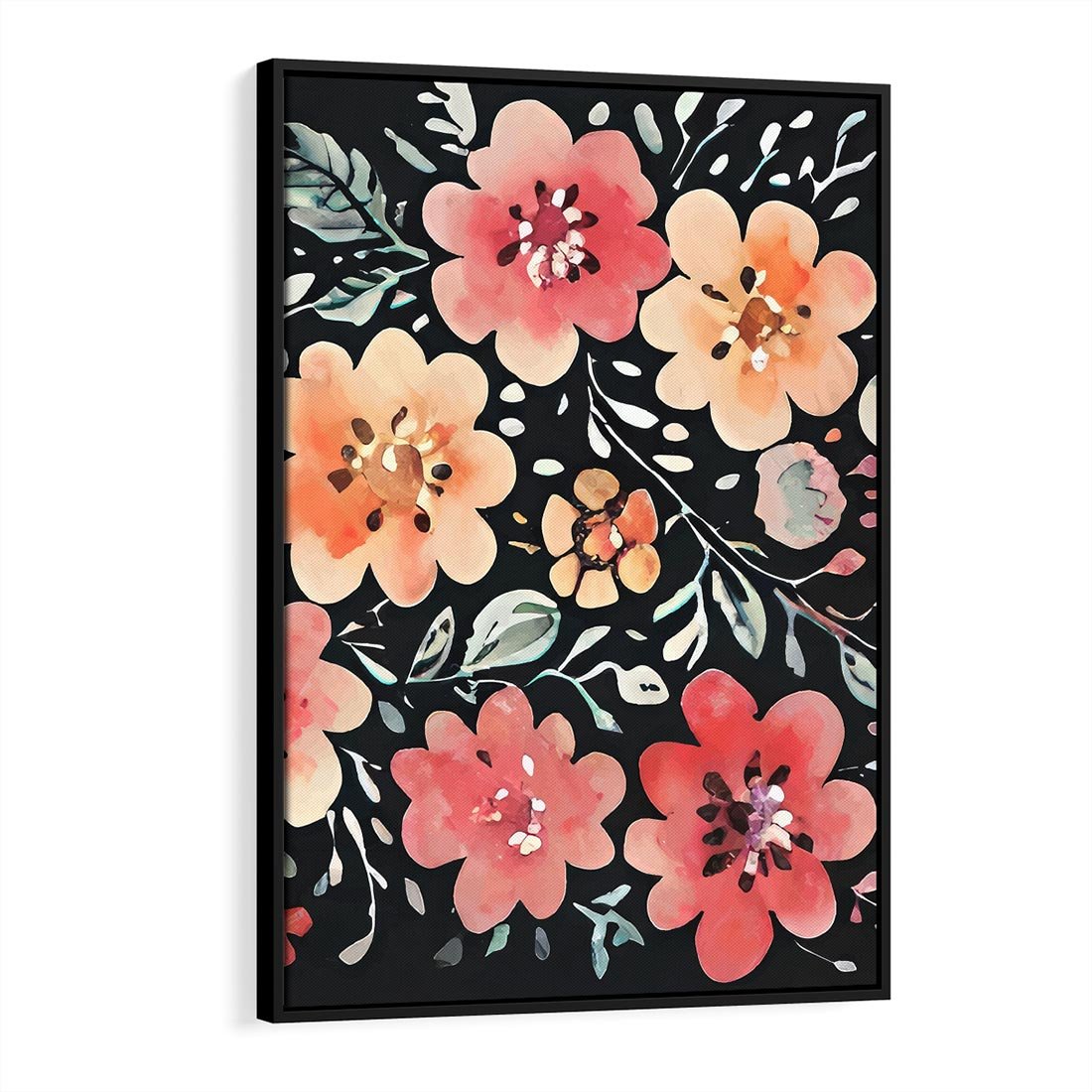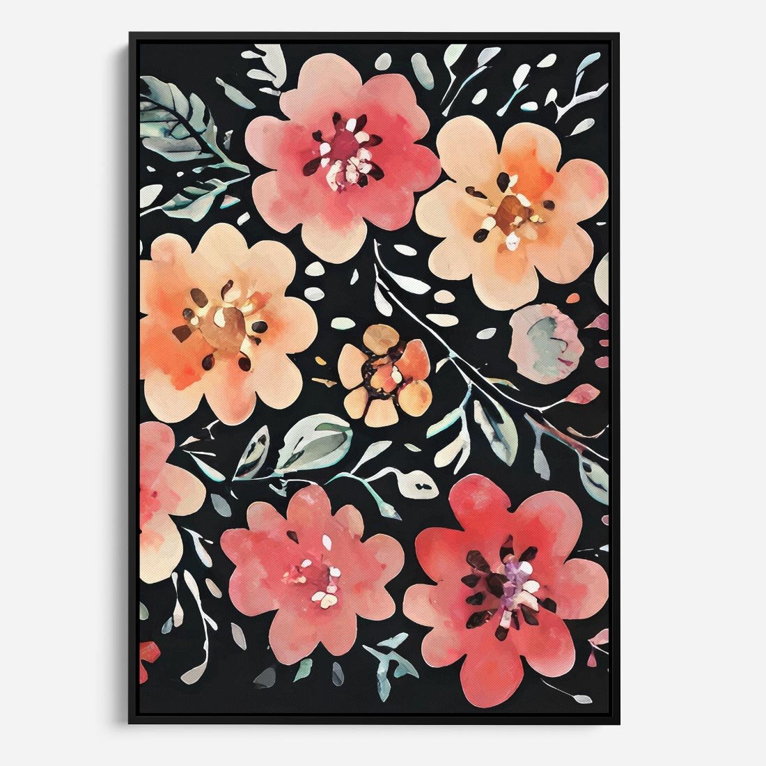 Obraz w ramie 70x100 - Labirynty melancholii - akwarelowe, pastelowe kwiaty na czarnym tle - rama czarna