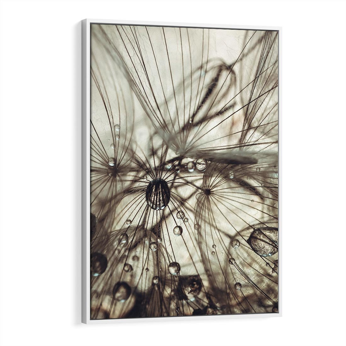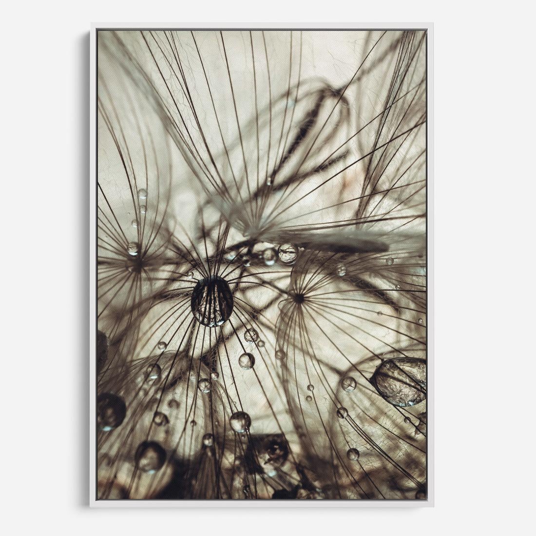 Obraz w ramie 70x100 - Lekkie dmuchawce - dmuchawce, krople - rama biała