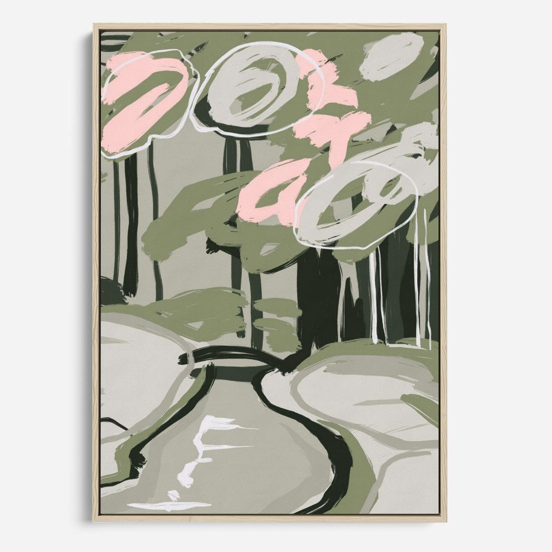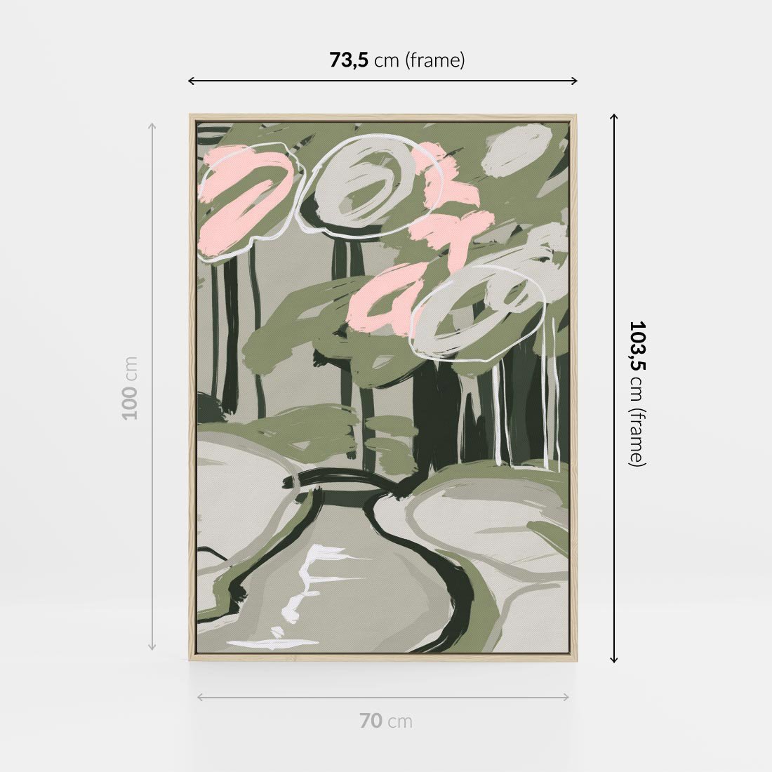 Obraz w ramie 70x100 - Leśny Zakątek - pastelowy krajobraz, nowoczesny plakat - rama drewno