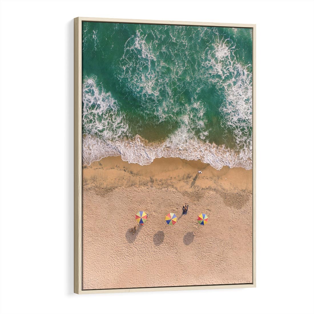 Poczuj atmosferę letnich wakacji za pomocą obrazu przedstawiającego plażę z morzem i parasolami. Przenieś się na piękne plaże i dodaj do swojego wnętrza wakacyjny nastrój.