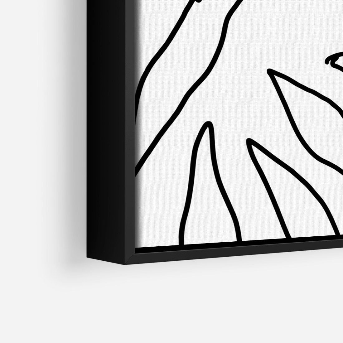 Czarny szkic liści na czystym białym tle tworzy mroczny minimalizm, nadając wnętrzu wyjątkowy charakter i wyrafinowaną estetykę.