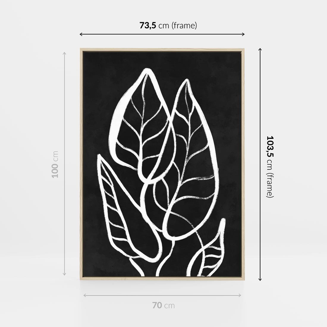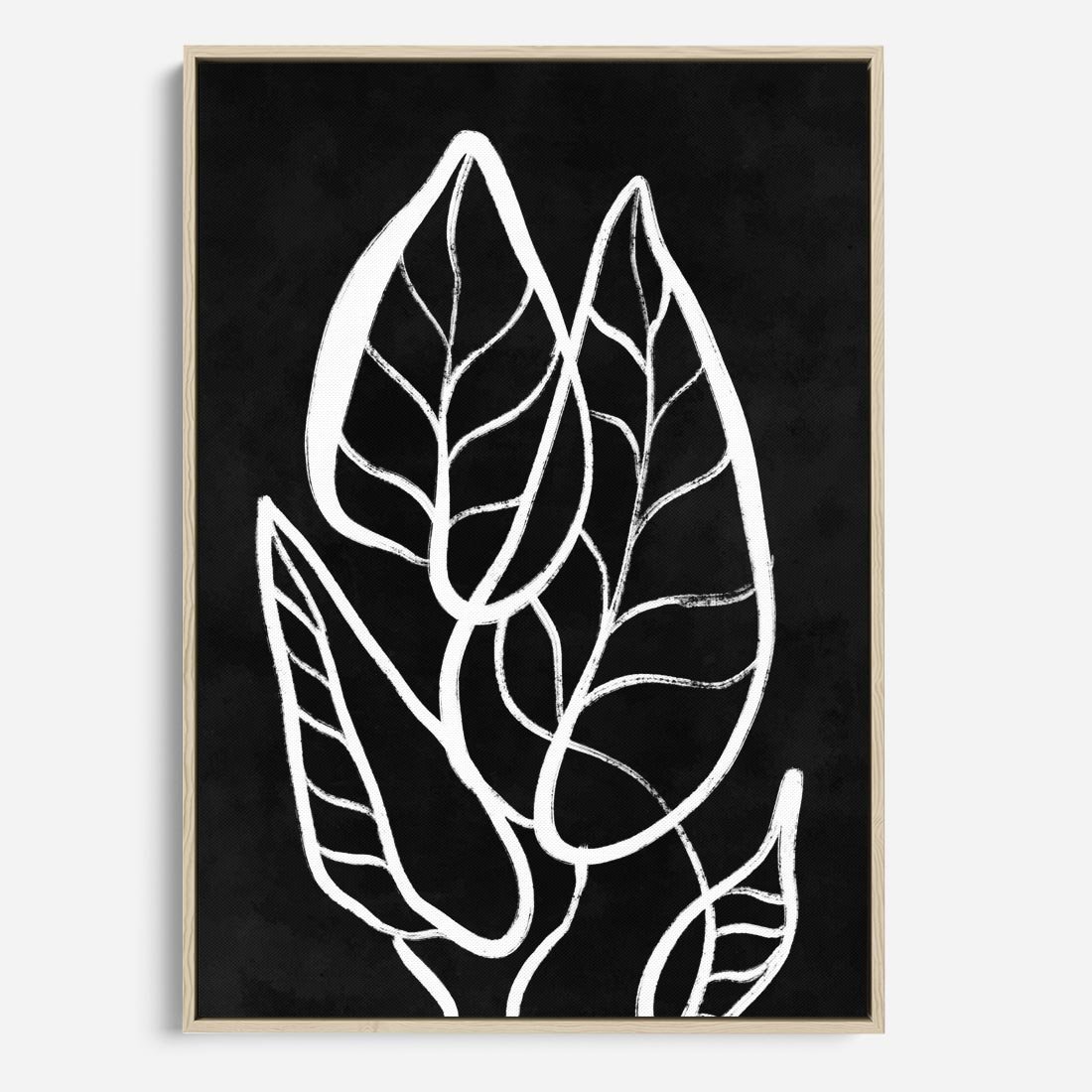 Biały szkic liści na głębokim czarnym tle tworzy mroczny minimalizm, który przyciąga uwagę i nadaje elegancji każdemu wnętrzu.