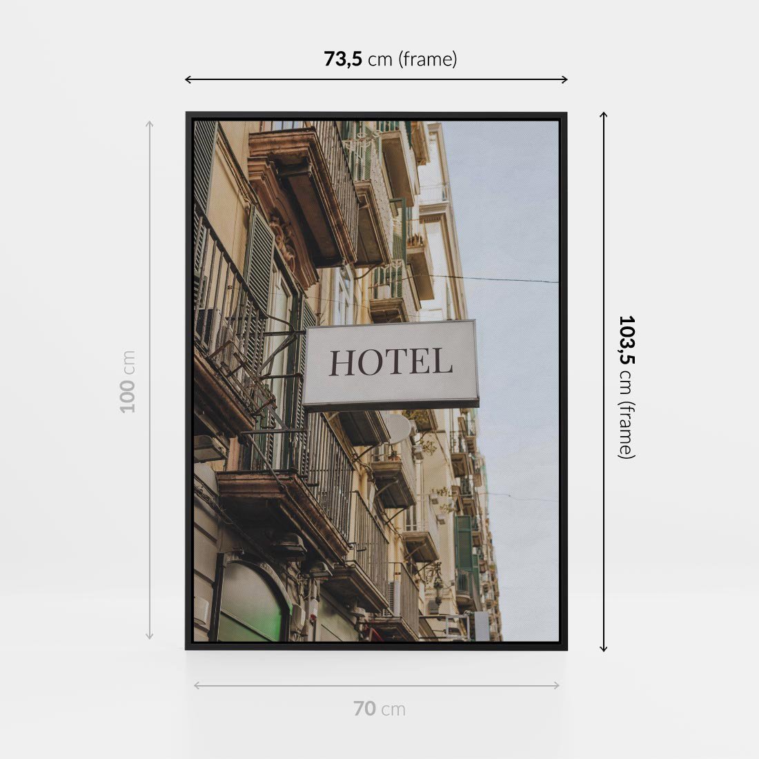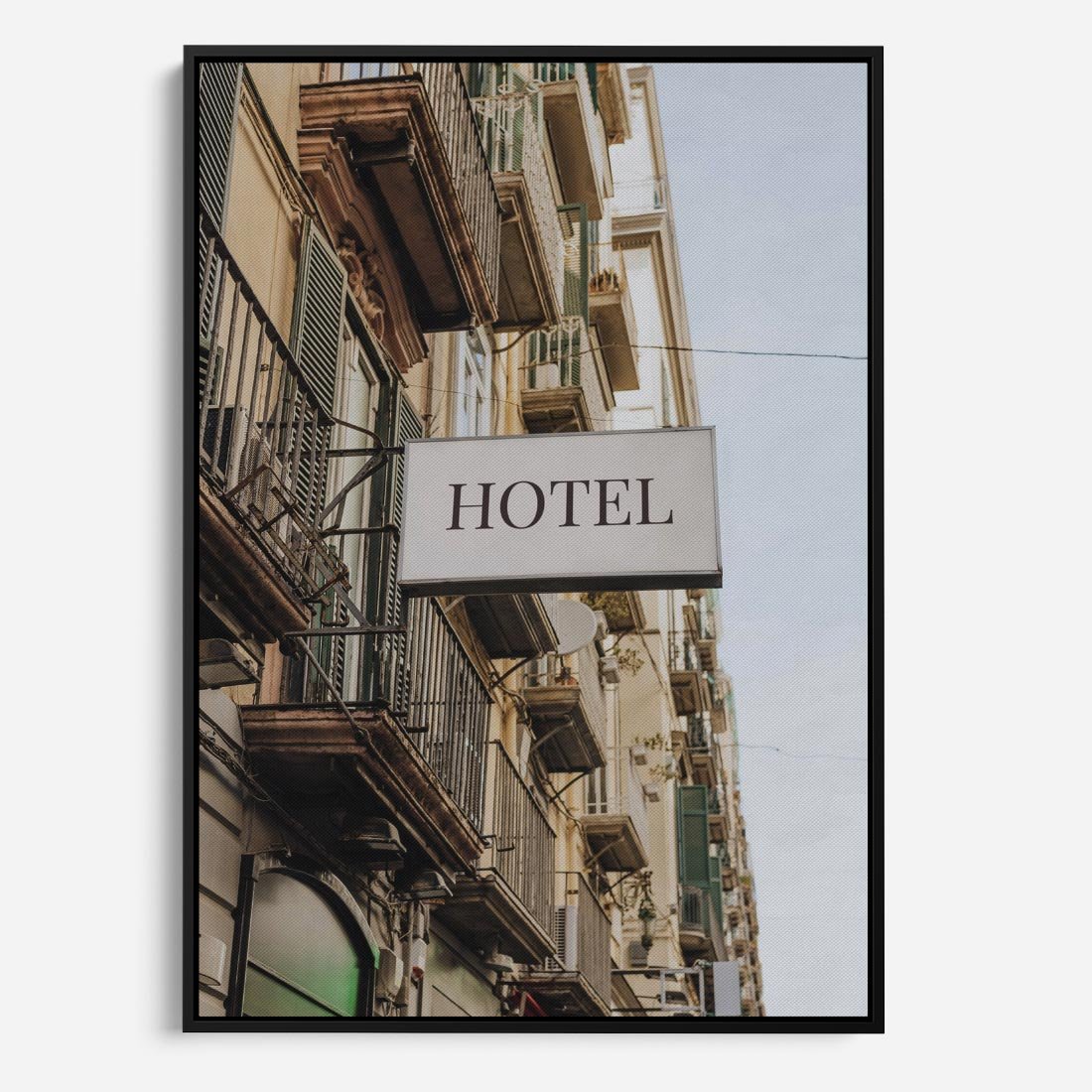 Obraz w ramie 70x100 - Magiczne Spacery - hotel, uliczka - rama czarna