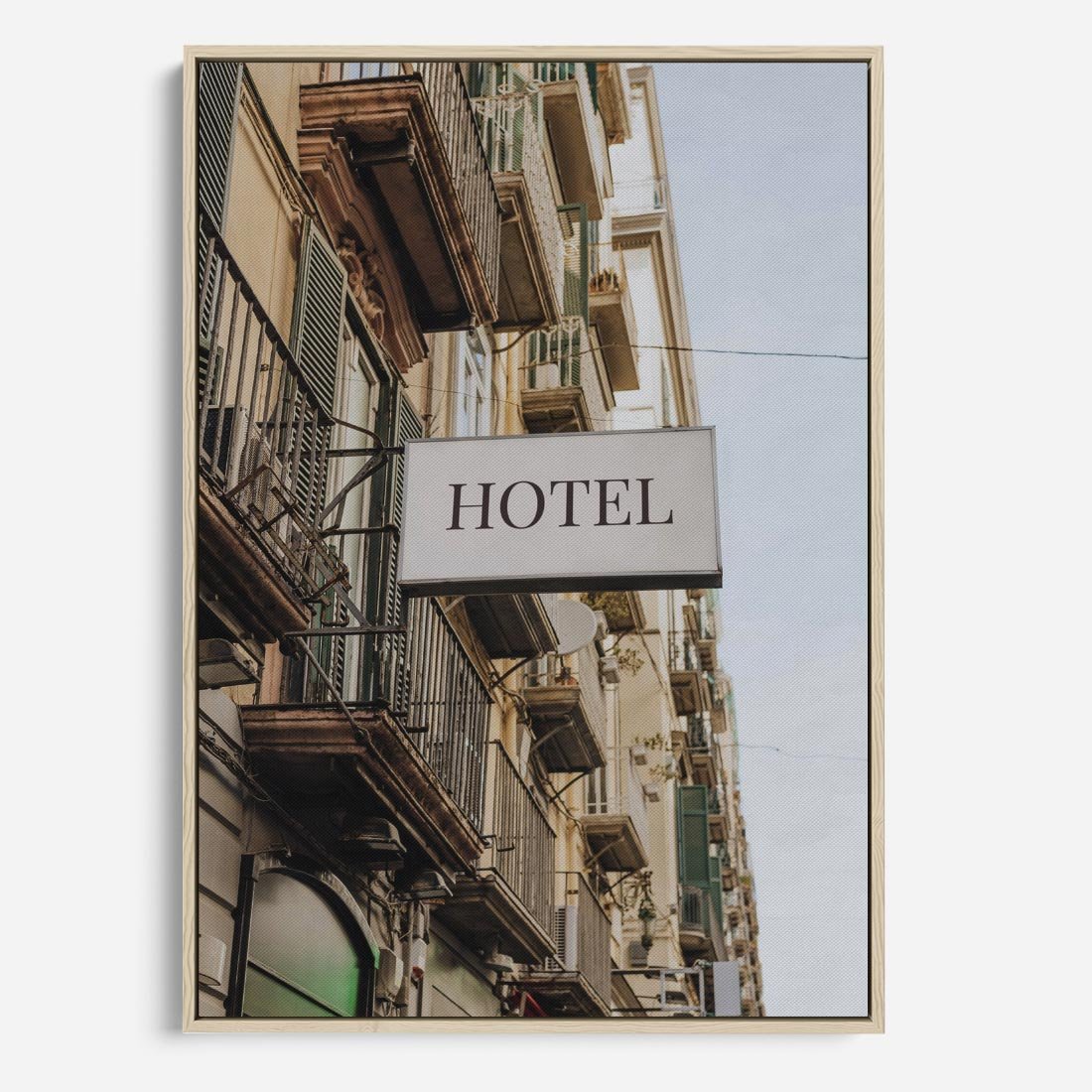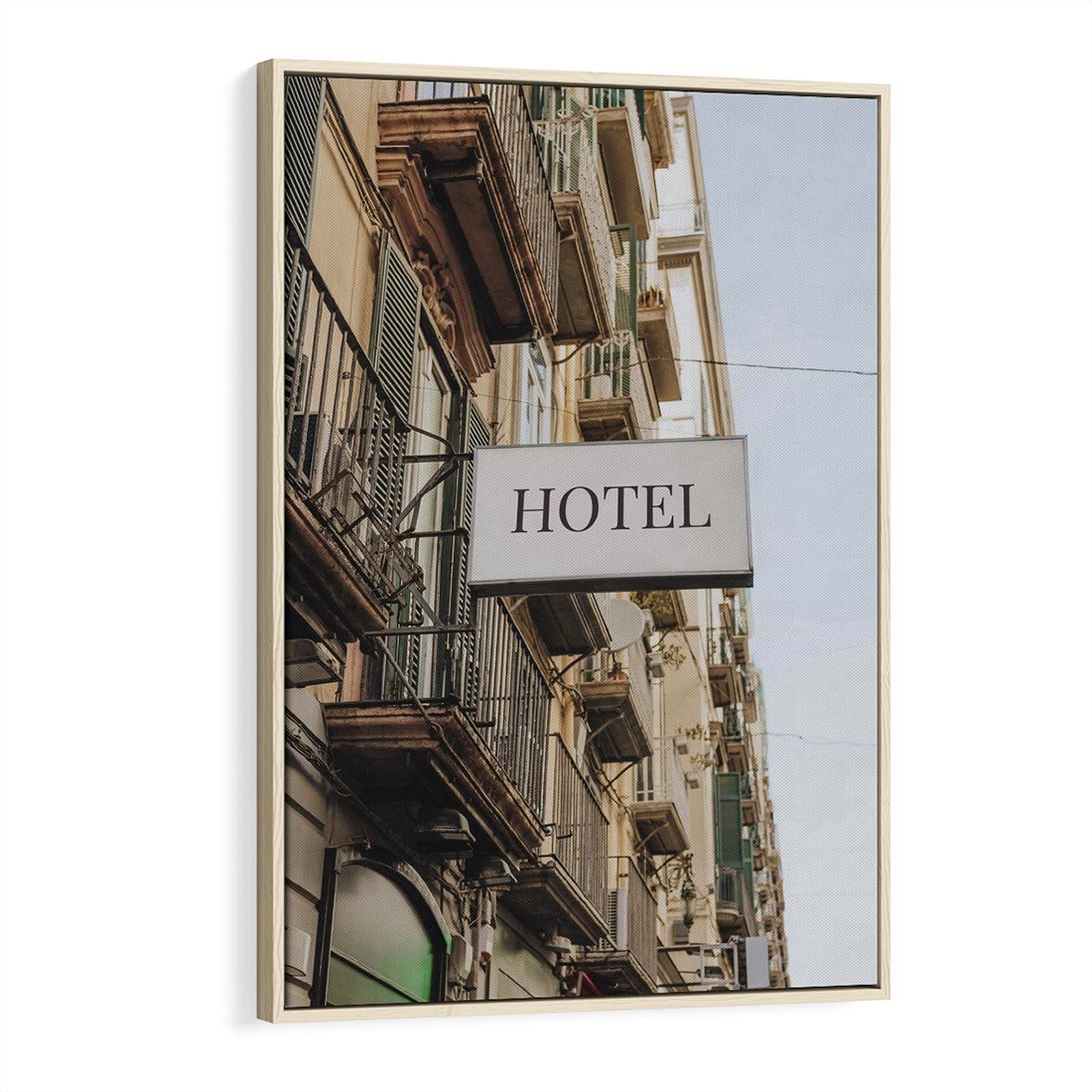 Obraz w ramie 70x100 - Magiczne Spacery - hotel, uliczka - rama drewno