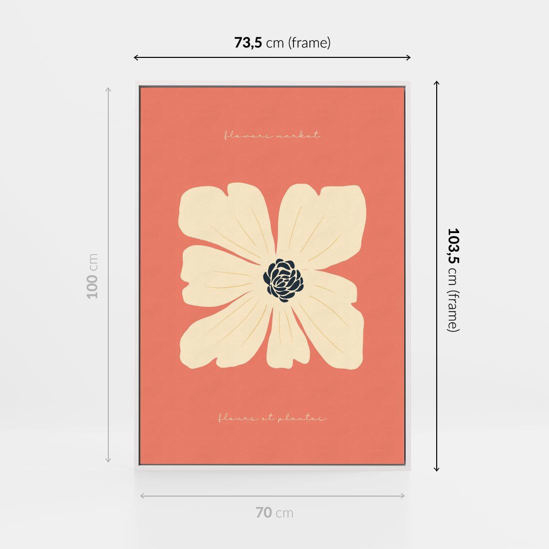 Obraz w ramie 70x100 - Malowane Kolorowe Echa - minimalistyczna grafika, biały kwiat na różowym tle - rama biała