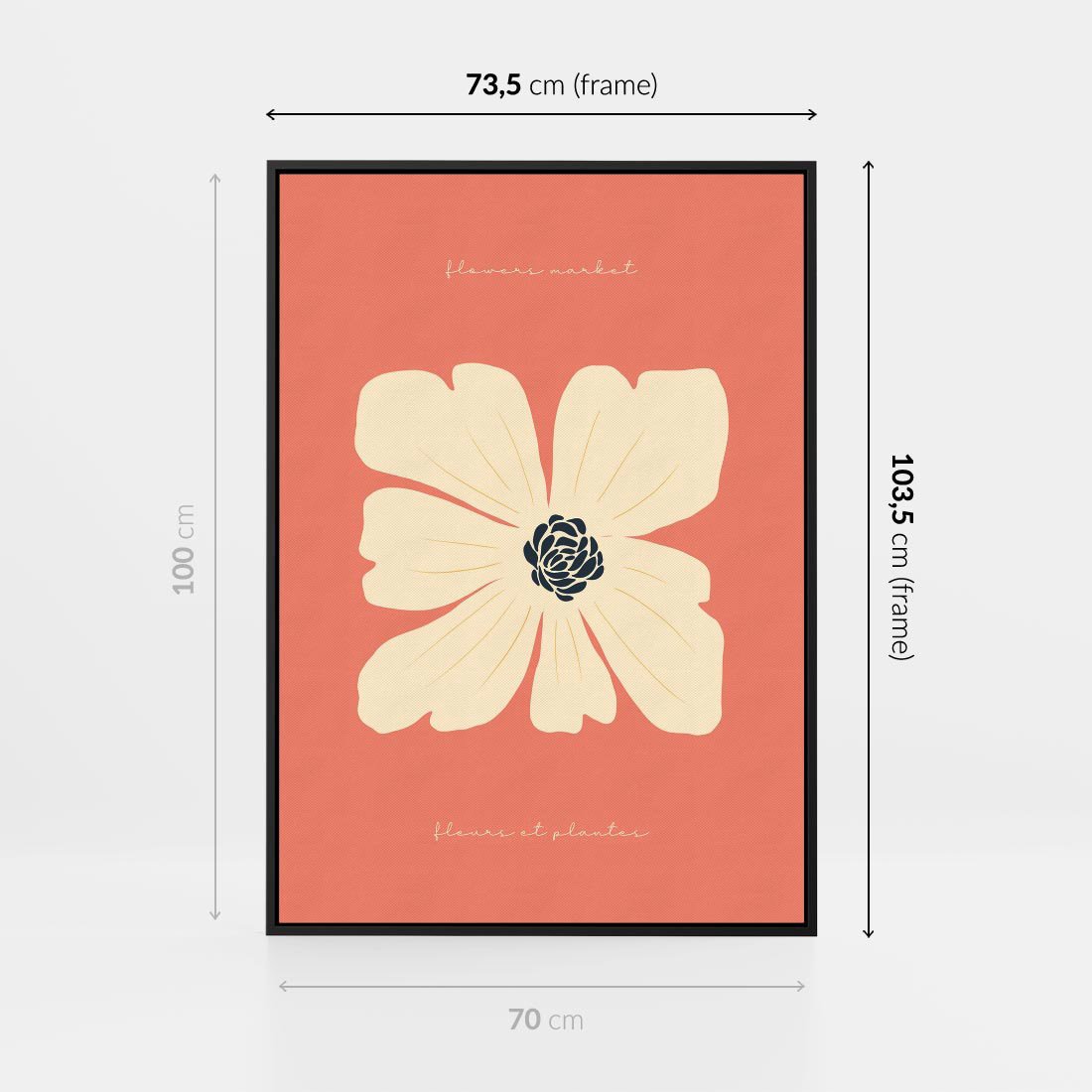 Obraz w ramie 70x100 - Malowane Kolorowe Echa - minimalistyczna grafika, biały kwiat na różowym tle - rama czarna