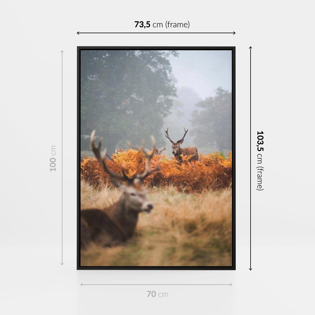 Obraz w ramie 70x100 - Malownicza Harmonia - jelenie, jesień - rama czarna
