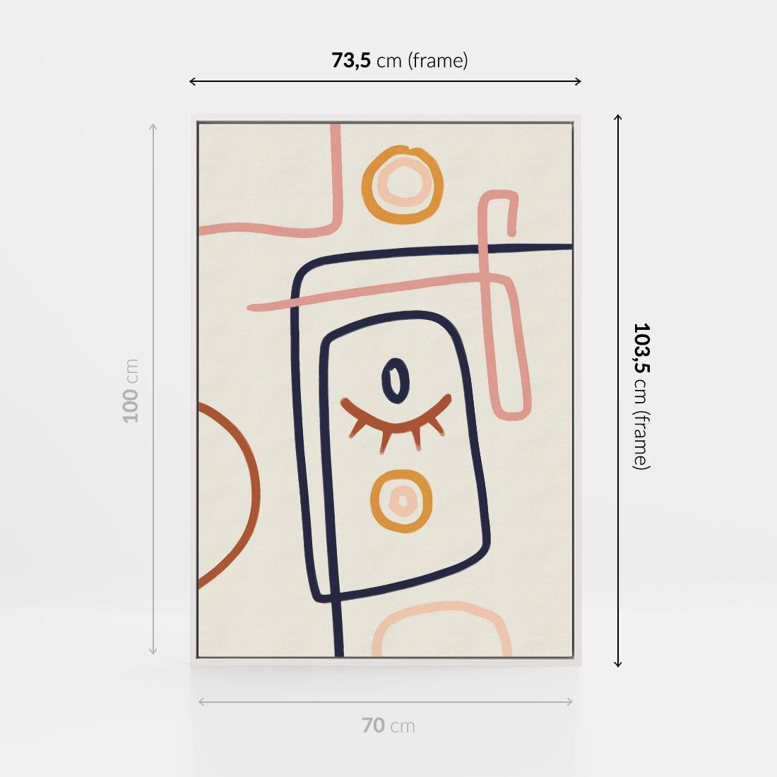 Obraz w ramie 70x100 - Manifestacje Dziwności - abstrakcja w stylu picasso, beżowe tło - rama biała