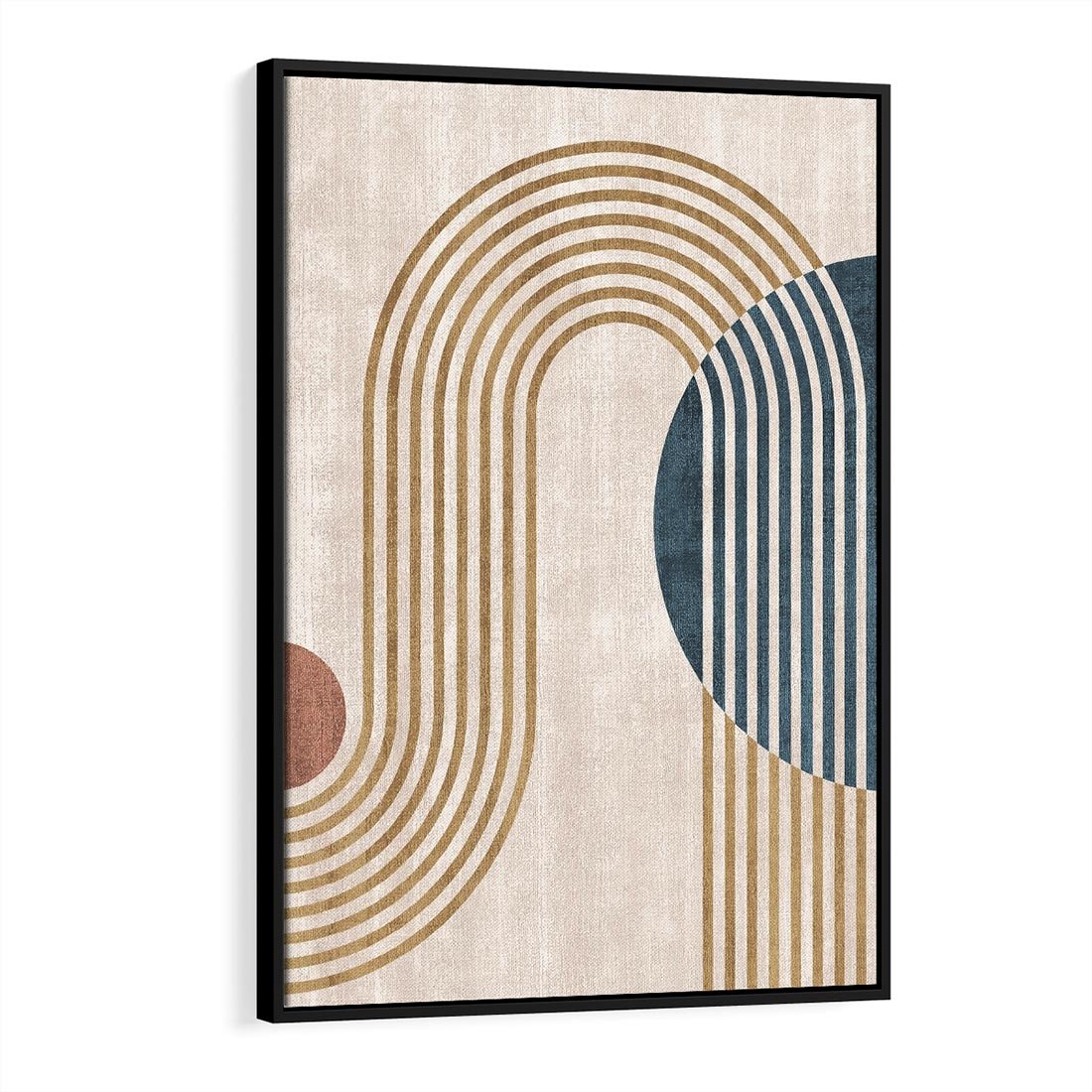 Ta retro grafika w stylu mid-century przenosi nas w świat eleganckich linii i harmonijnych kształtów. Odcienie beżu i złota tworzą ciepłą i luksusową aurę. Rozświetl swoje wnętrze złotymi wizjami z minionej epoki, gdzie formy i kolory harmonizują w hołdzie dla sztuki.