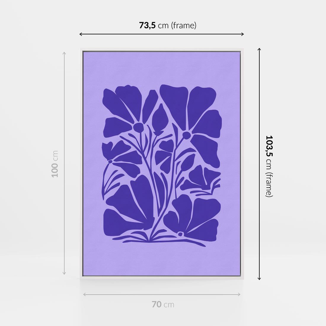 Ten plakat to unikalna abstrakcyjna kompozycja kwiatów na energetycznym fioletowym tle. Sztuka ta łączy piękno kwiatów z wyrazistym kolorem, tworząc dynamiczną i intrygującą atmosferę. Plakat dodaje charakteru i głębi do Twojej przestrzeni, będąc zarówno pięknym elementem dekoracyjnym, jak i inspirującym dziełem sztuki abstrakcyjnej.