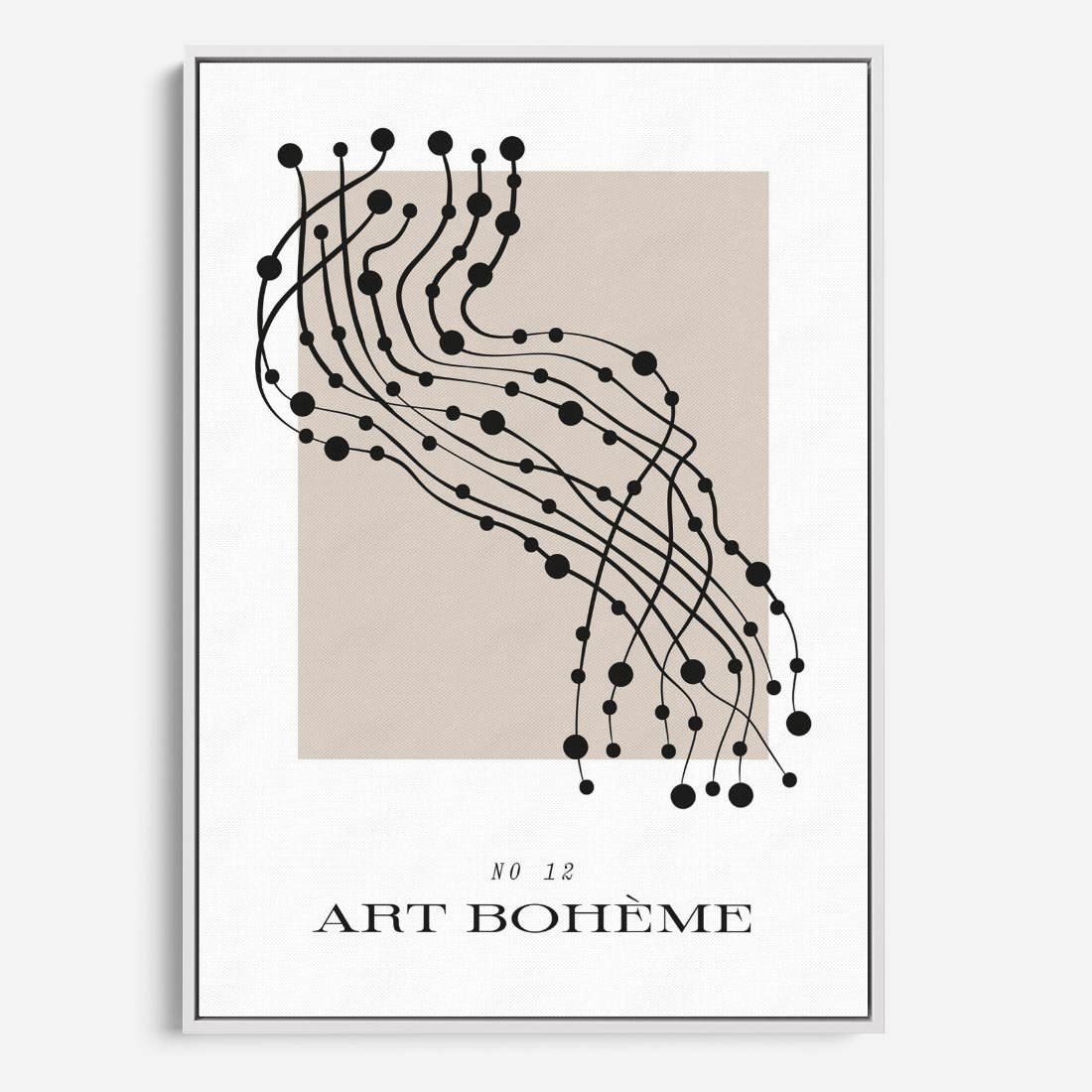 Ta abstrakcyjna rycina w odcieniach czerni i bieli jest hołdem dla sztuki minimalizmu i ducha boho. Skomponowana z precyzją, tworzy abstrakcyjny świat, który pobudza wyobraźnię i zachęca do refleksji. To dzieło, które zachowuje równowagę między minimalistyczną prostotą a bogactwem abstrakcyjnych form, tworząc wyjątkowy efekt wizualny.