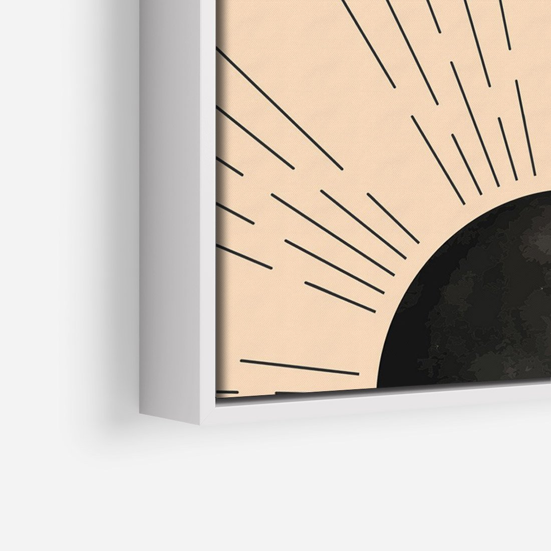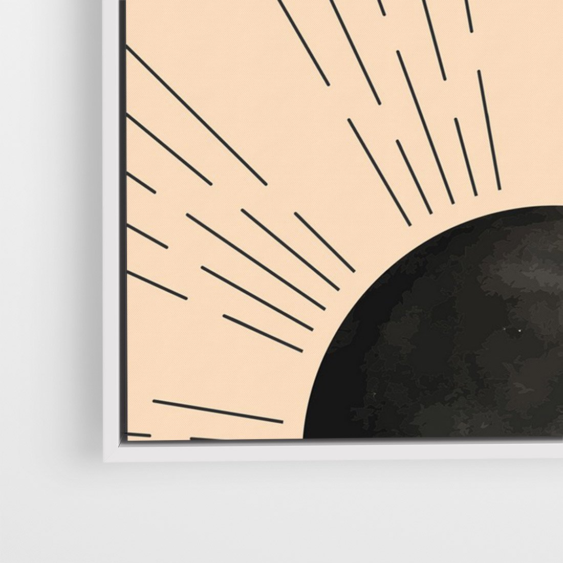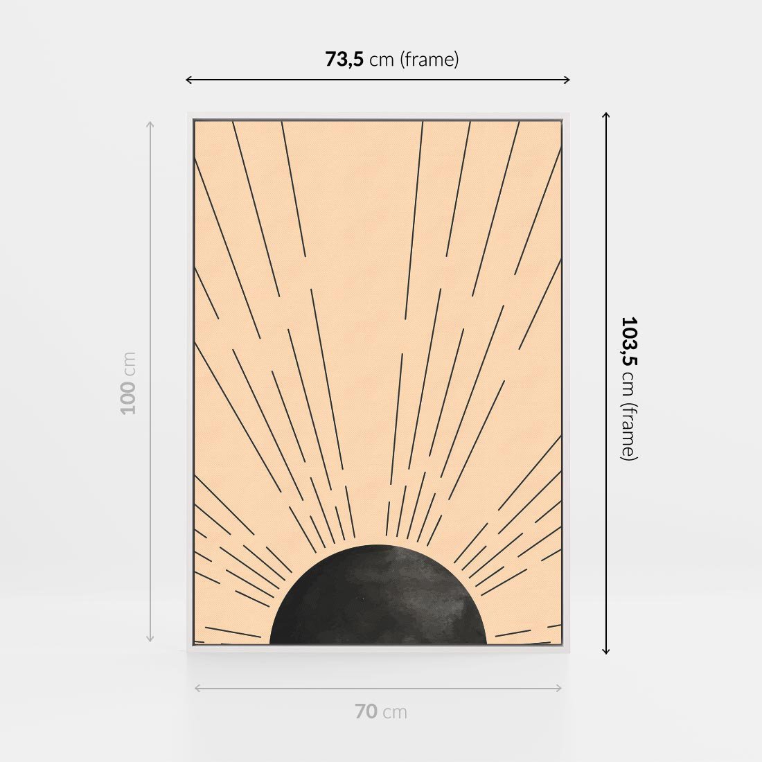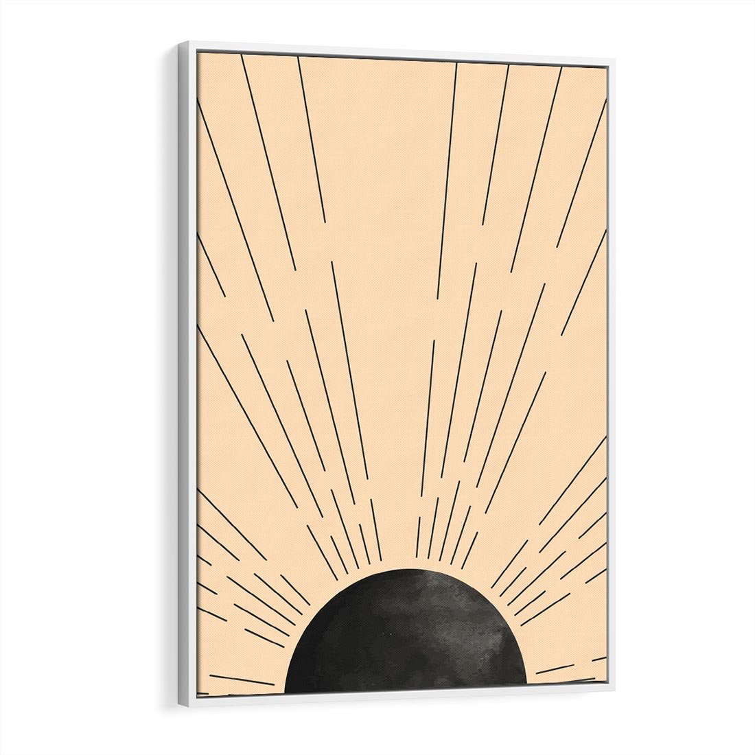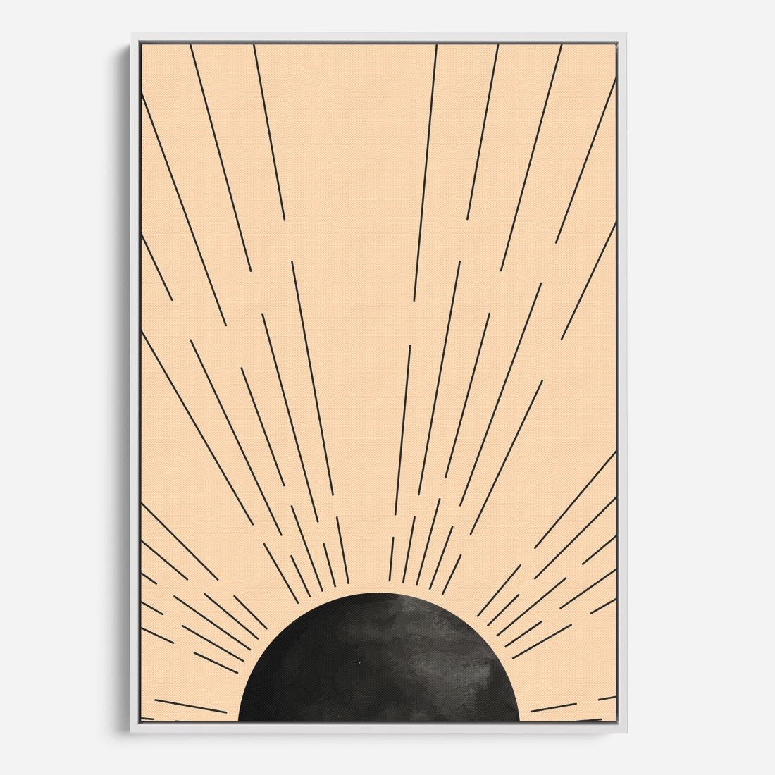 Obraz w ramie 70x100 - Migocące Kształty Promieni - boho czarne słońce, nowoczesna grafika - rama biała