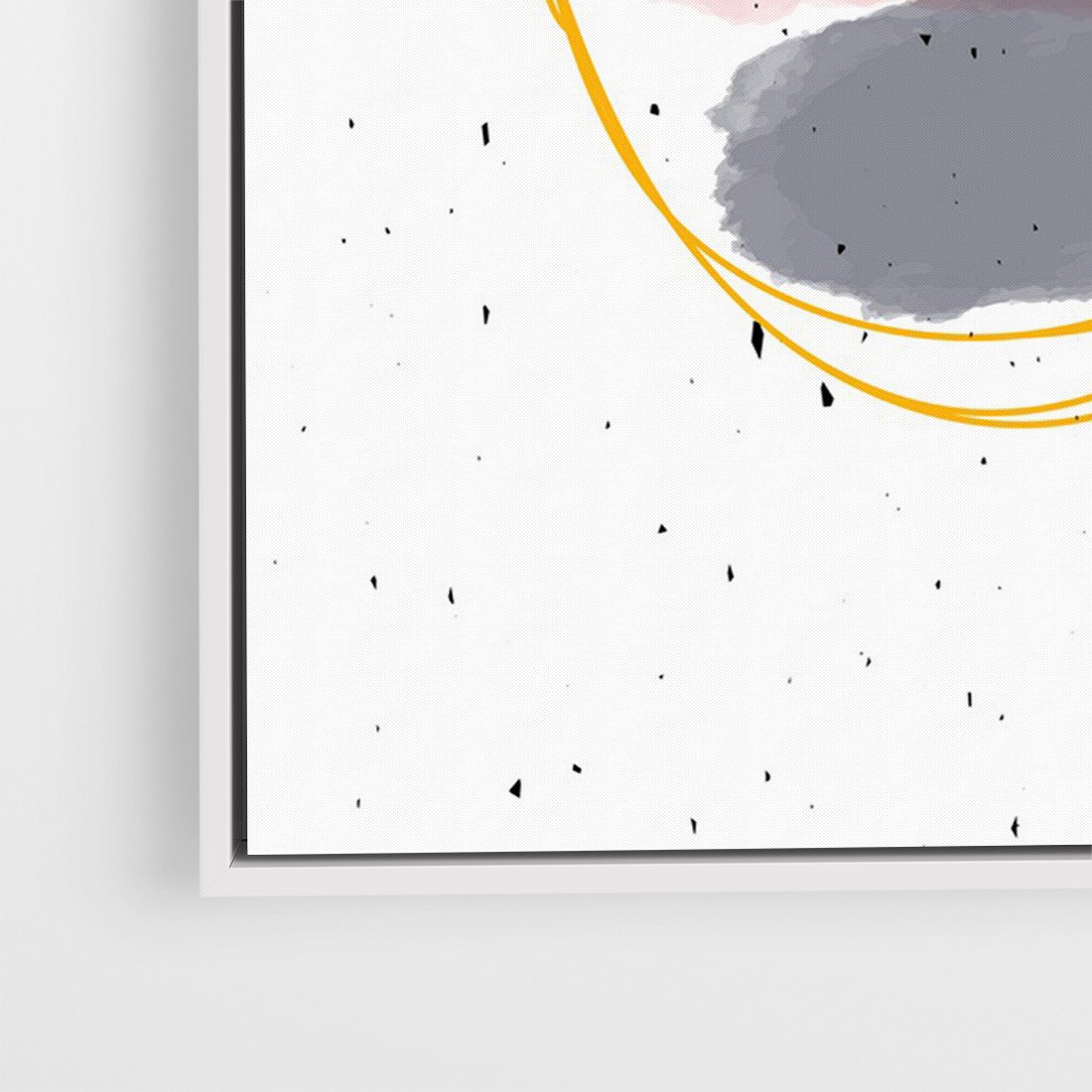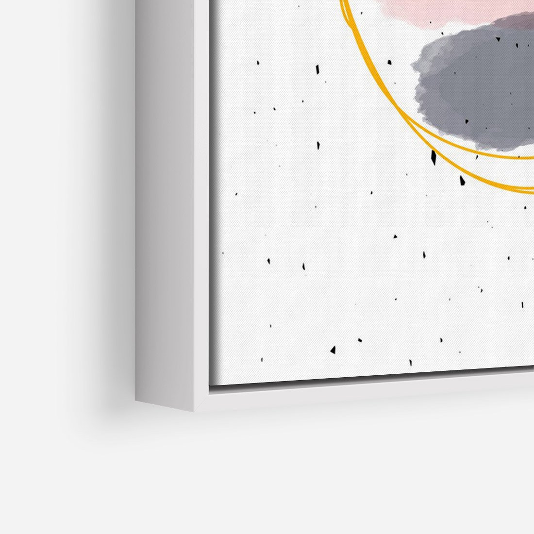 Twórcza abstrakcja, przypominająca ręcznie malowane dzieło, ożywiona plamami akwarelowymi, nieregularnymi kreskami i swobodnymi ciapkami.