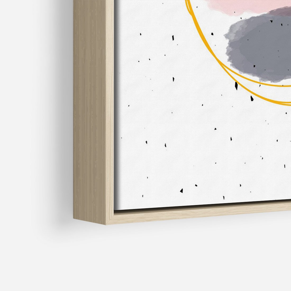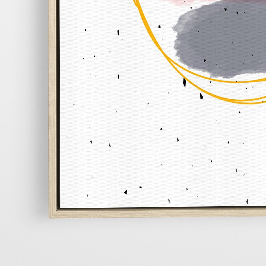 Twórcza abstrakcja, przypominająca ręcznie malowane dzieło, ożywiona plamami akwarelowymi, nieregularnymi kreskami i swobodnymi ciapkami.