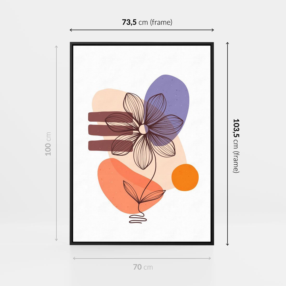 Nasza abstrakcyjna sztuka łączy plamy i kwiat w wyjątkowej grafice. To twórcze połączenie tworzy dynamiczną kompozycję pełną wyrazu i nowatorskiej formy.