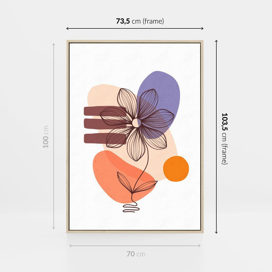 Nasza abstrakcyjna sztuka łączy plamy i kwiat w wyjątkowej grafice. To twórcze połączenie tworzy dynamiczną kompozycję pełną wyrazu i nowatorskiej formy.
