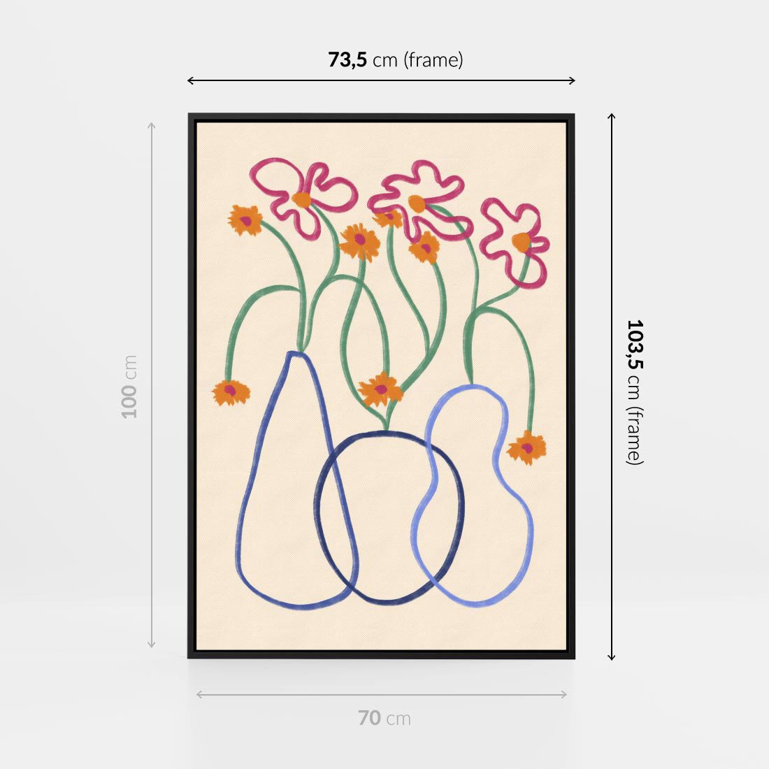 Ten minimalistyczny abstrakcyjny obraz prezentuje prymitywne kwiatki za pomocą delikatnych, kolorowych linii. Kompozycja jest subtelna, a jednocześnie pełna wyrazu, tworząc unikalne połączenie prostoty i artystycznego wyrazu. To idealny dodatek do nowoczesnych wnętrz, dodający im charakteru i oryginalności.