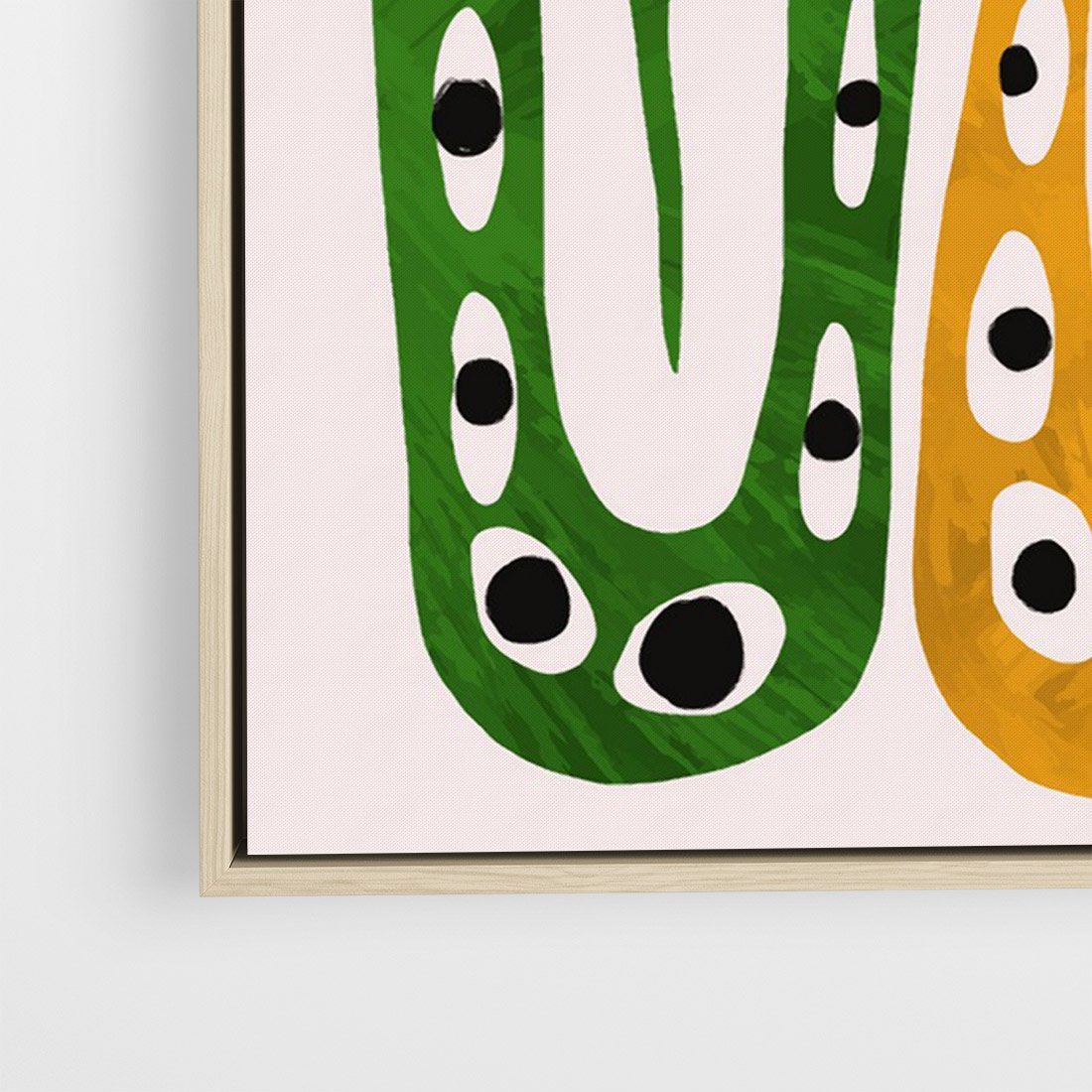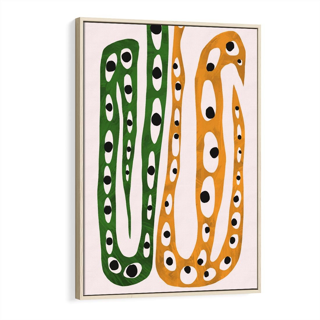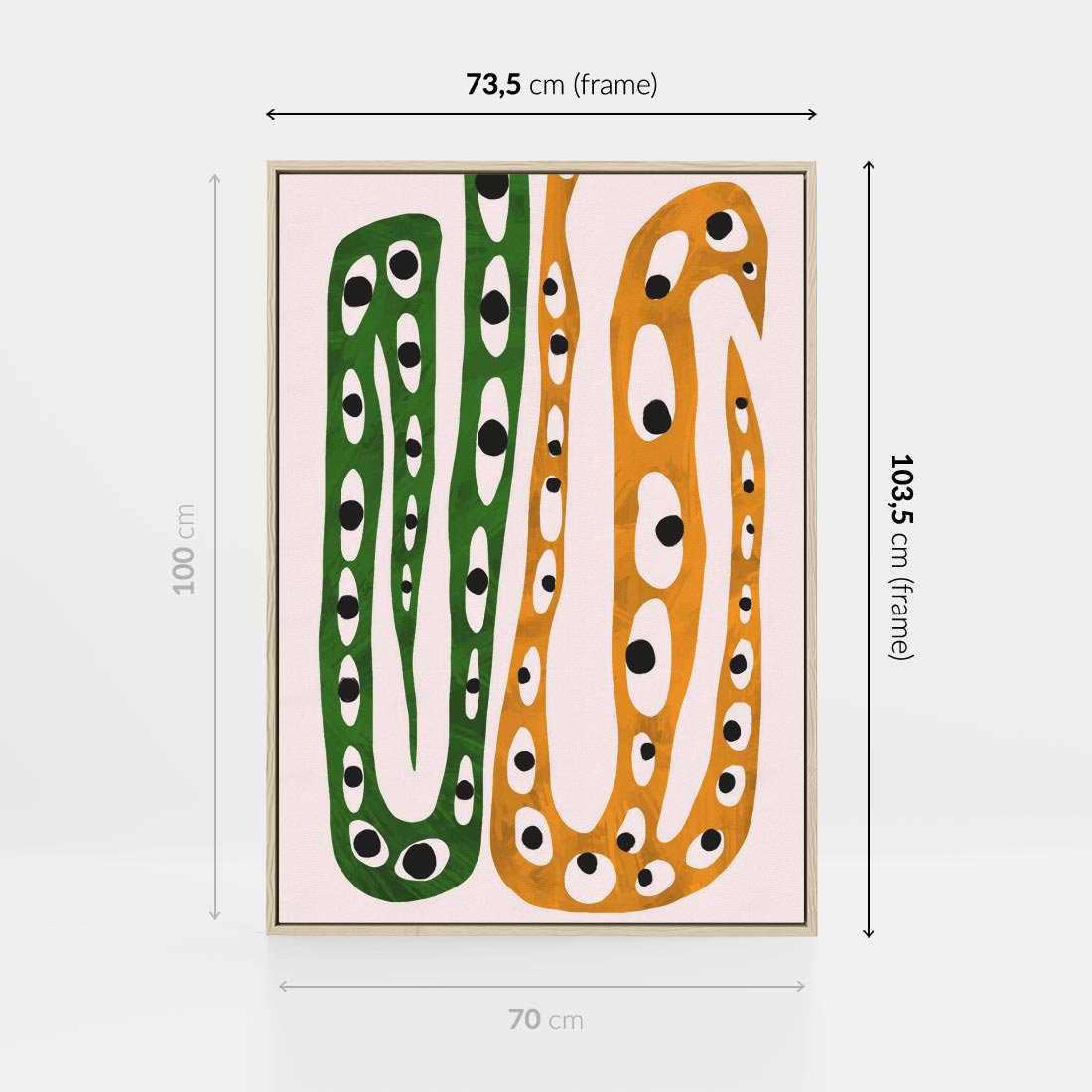 Nasz abstrakcyjny obraz przeniesie Cię w tajemniczy świat dziwnych kształtów przypominających zwinne węże. Soczyste żółte i zielone barwy ożywiają kompozycję, tworząc dynamiczny kontrast. To wyjątkowy akcent artystyczny, który dodaje charakteru i zaskoczenia każdej przestrzeni.