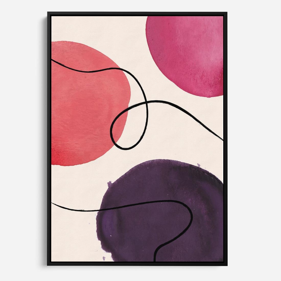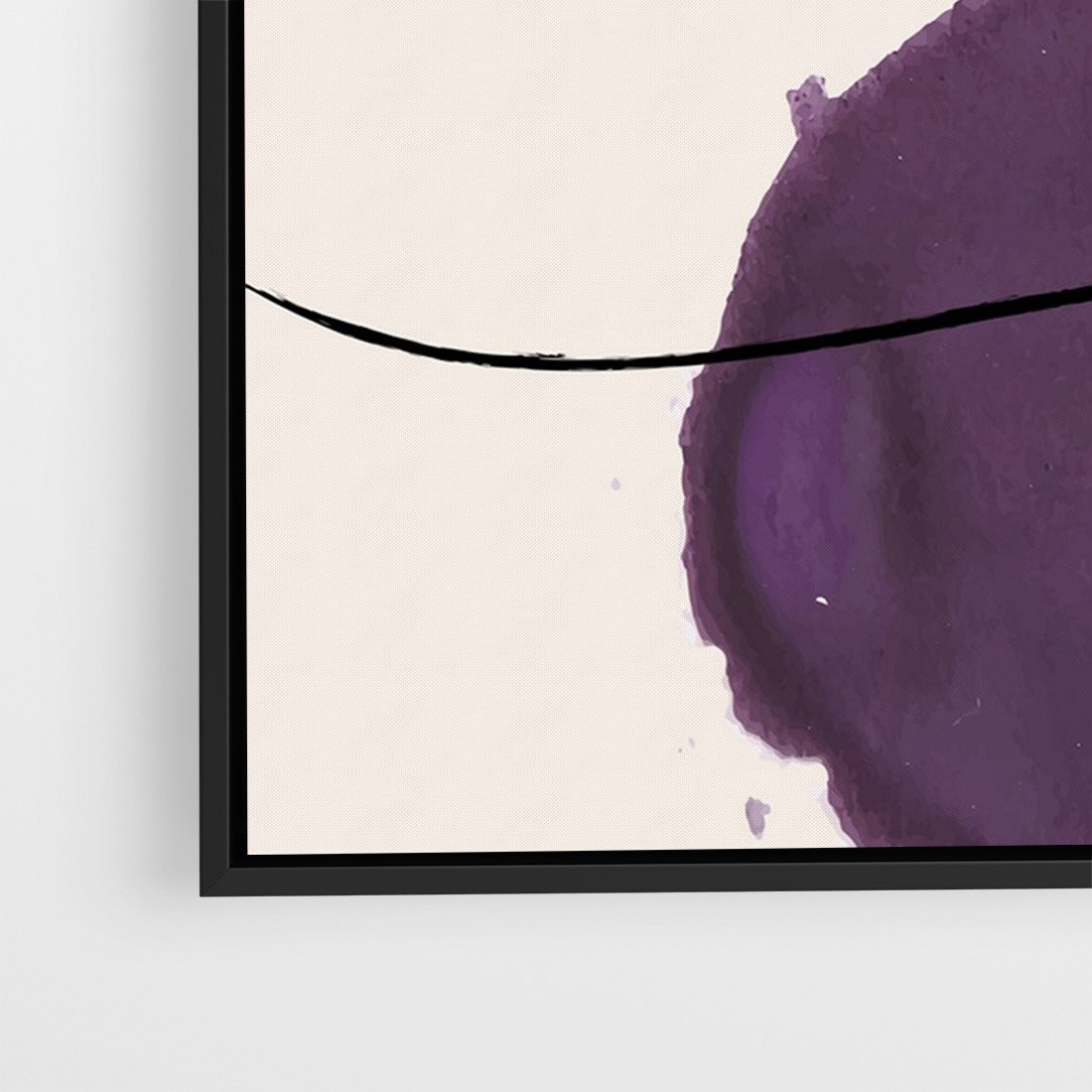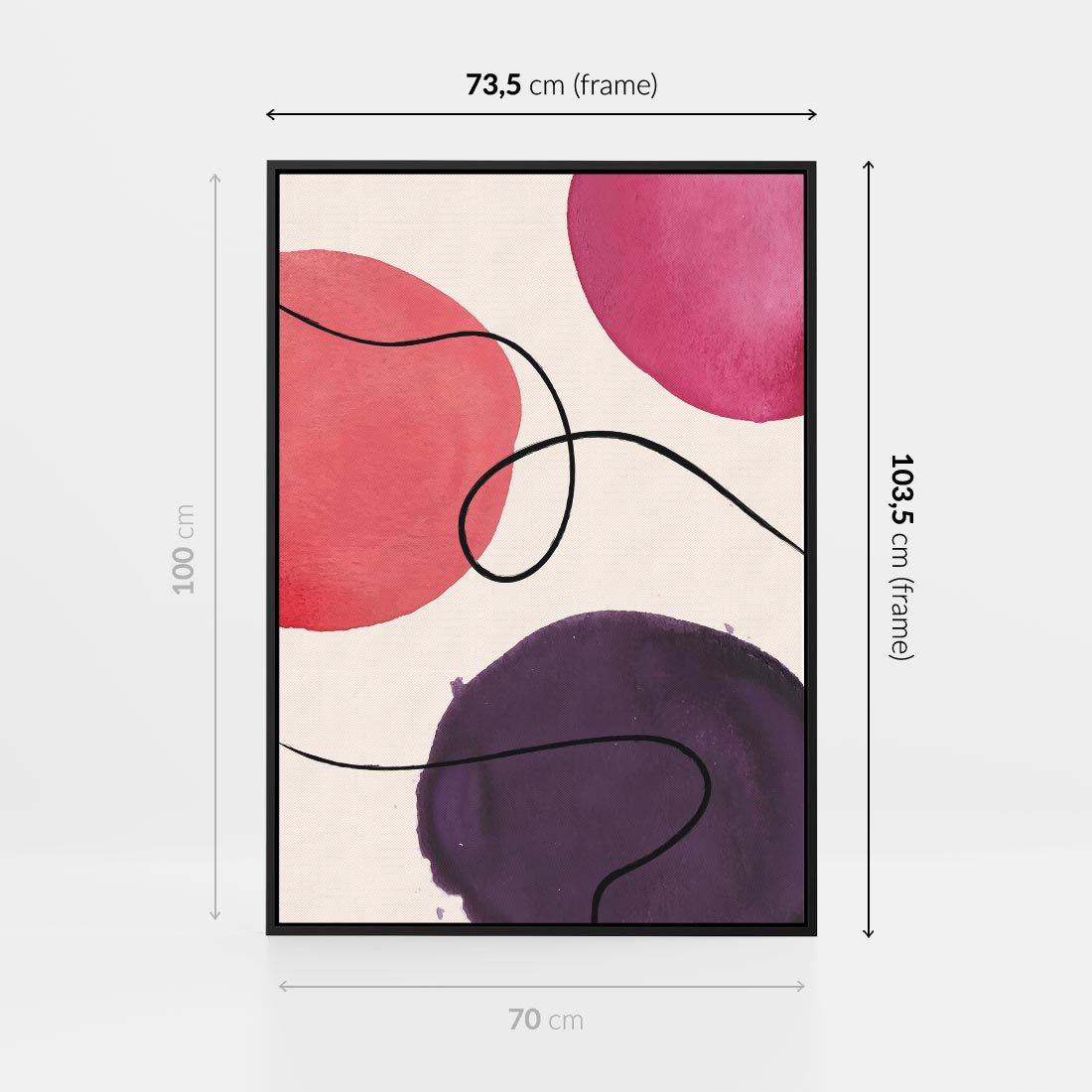 Ten obraz emanuje energią dzięki abstrakcyjnym akwarelowym plamom i nieregularnym liniom, tworząc chaos w kompozycji. Odcienie fioletu i różu dodają mu wyrazistości.