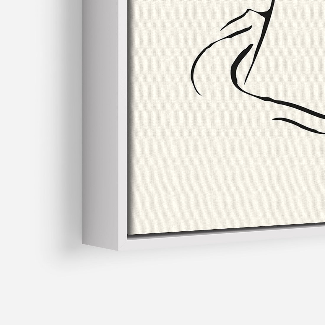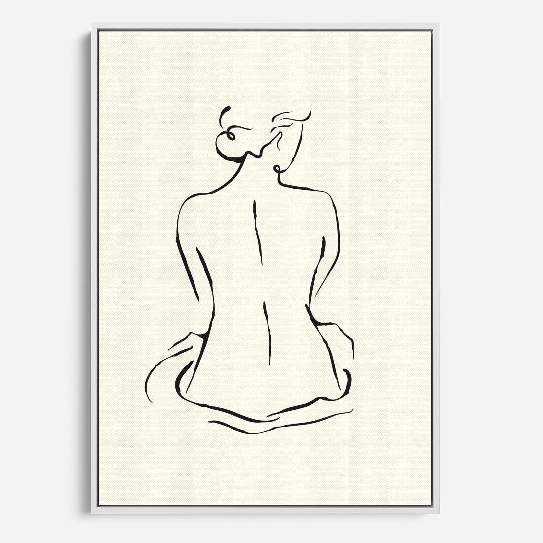 Ten czarno-biały szkic prezentuje akt kobiecy w minimalistycznym stylu. Poprzez wykorzystanie prostych linii i kształtów, sztuka ta oddaje piękno i elegancję postaci, tworząc spokojny i wyrafinowany obraz, który zachwyca swoją subtelnością i głębokim wyrazem.