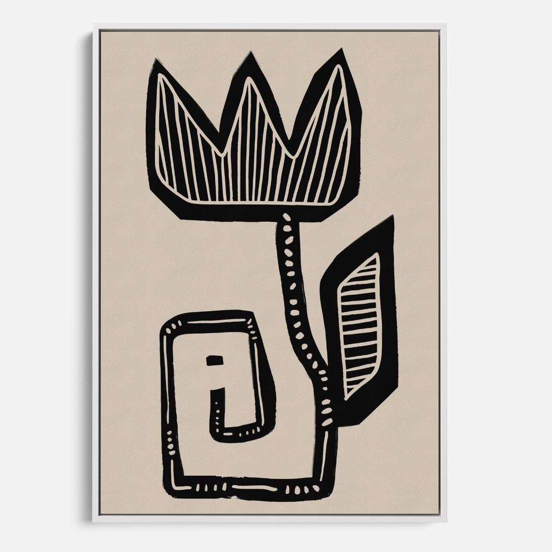 Ten boho nowoczesny plakat to minimalistyczna grafika czarnego kwiatu na spokojnym beżowym tle. To wyjątkowe połączenie stylów wprowadza do Twojej przestrzeni harmonię i wyrafinowanie, tworząc równocześnie interesujący akcent artystyczny.