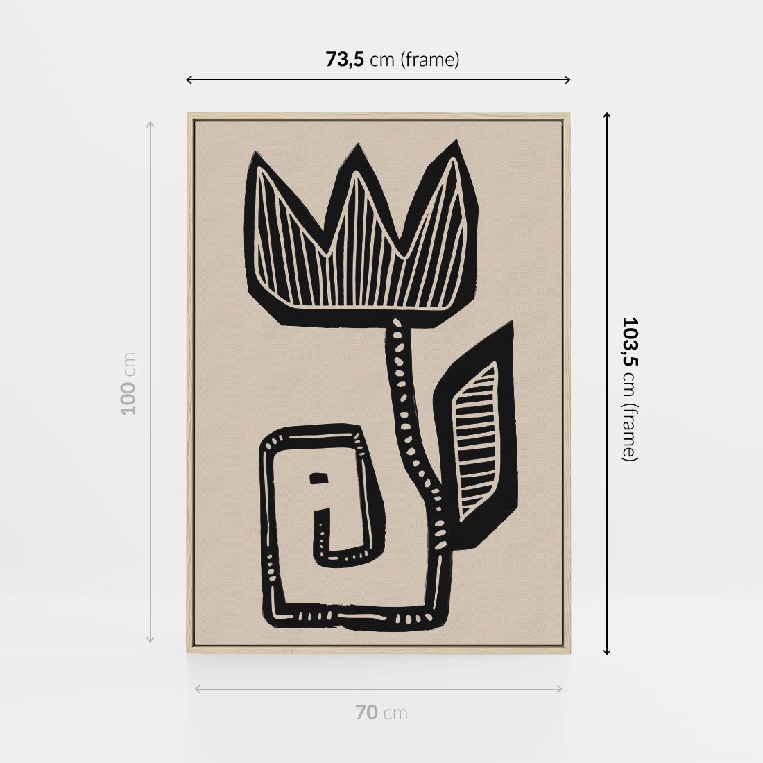 Ten boho nowoczesny plakat to minimalistyczna grafika czarnego kwiatu na spokojnym beżowym tle. To wyjątkowe połączenie stylów wprowadza do Twojej przestrzeni harmonię i wyrafinowanie, tworząc równocześnie interesujący akcent artystyczny.