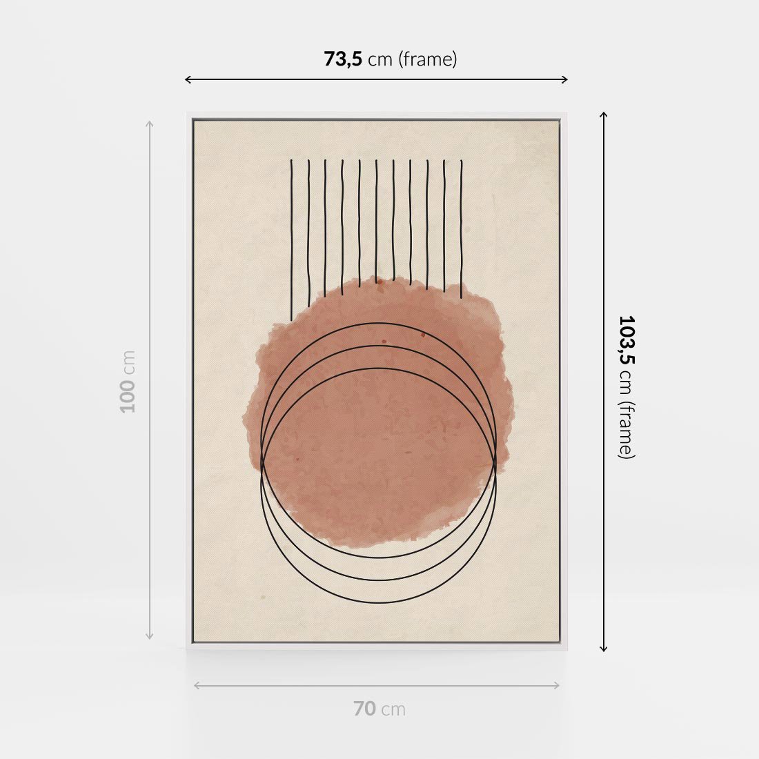 Delikatna akwarelowa plama harmonijnie łączy się z geometrycznymi, szkicowanymi kształtami, tworząc kompozycję pełną regularności i prostoty.