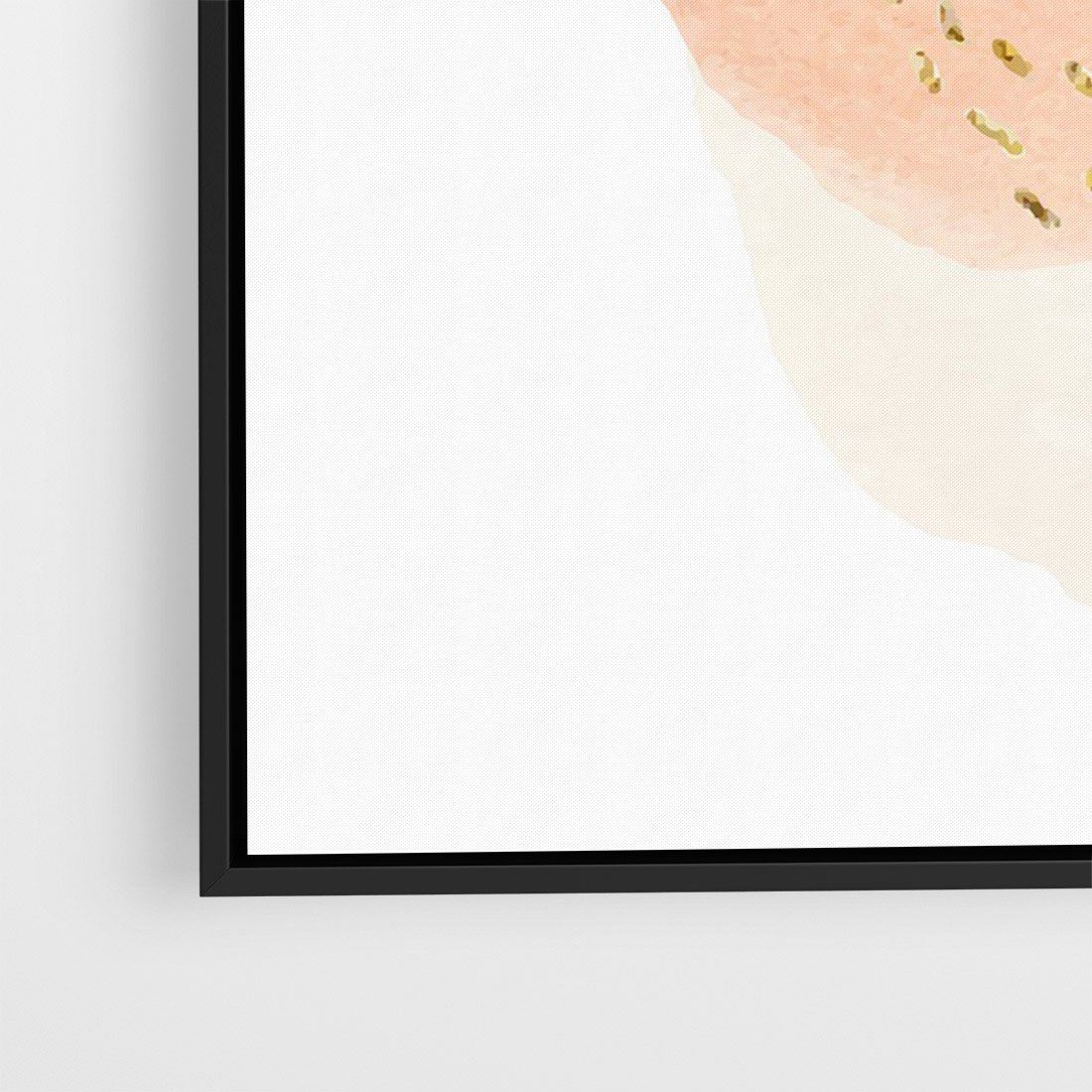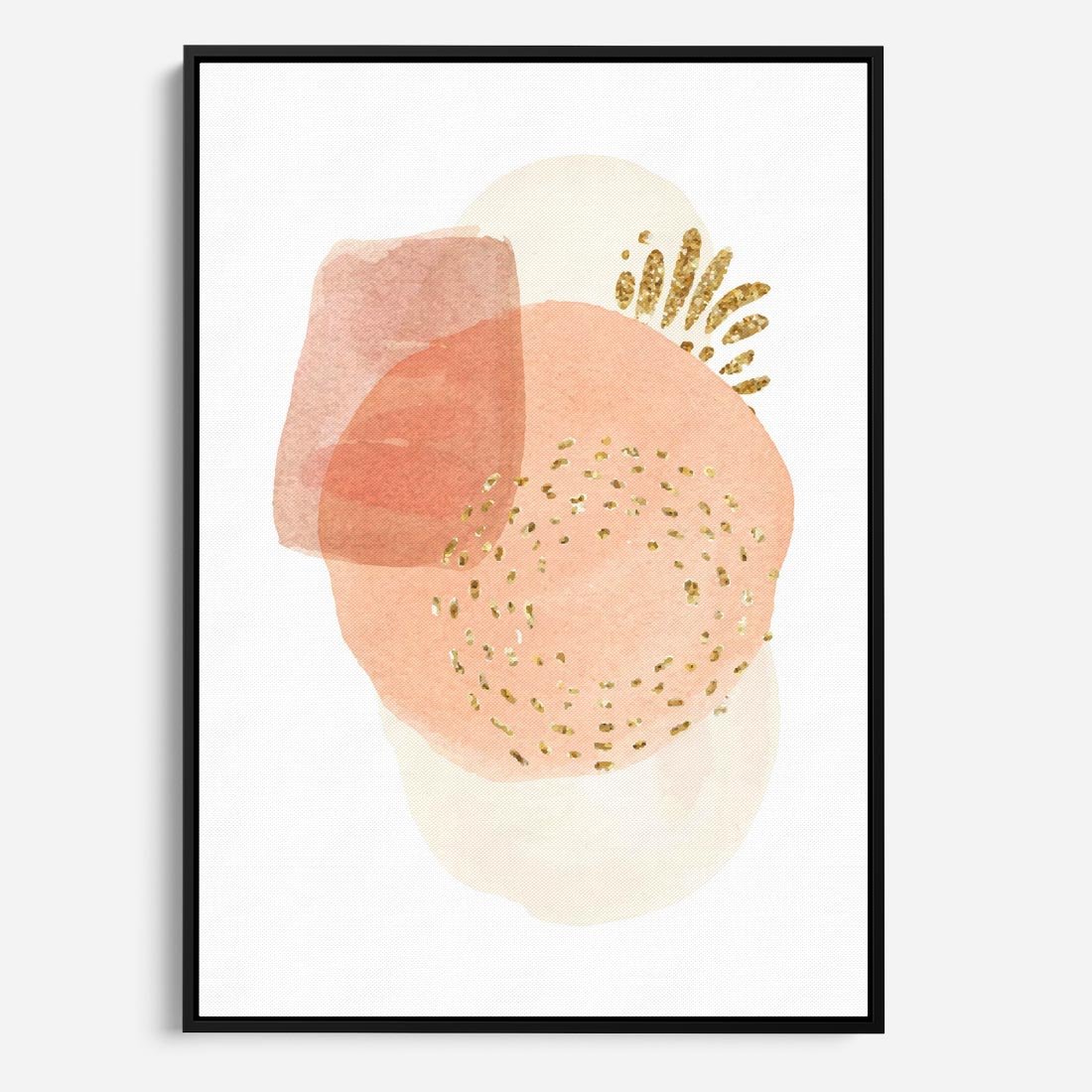 Minimalistyczna kompozycja abstrakcyjnych akwarelowych plam w stonowanych pastelach, ozdobiona subtelnie złotymi elementami. To wyrafinowane dzieło sztuki, które w prostocie wyraża piękno i harmonię.