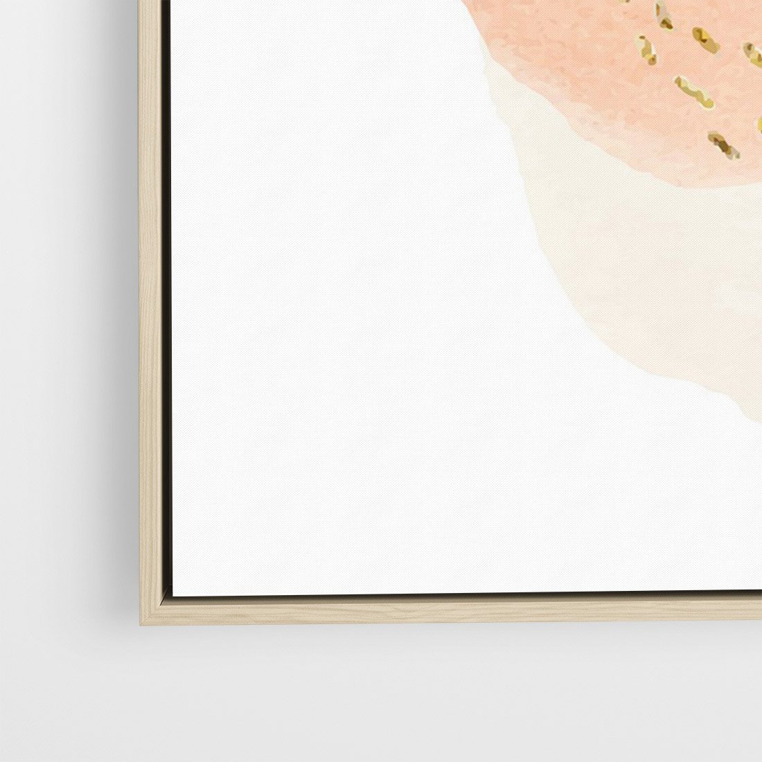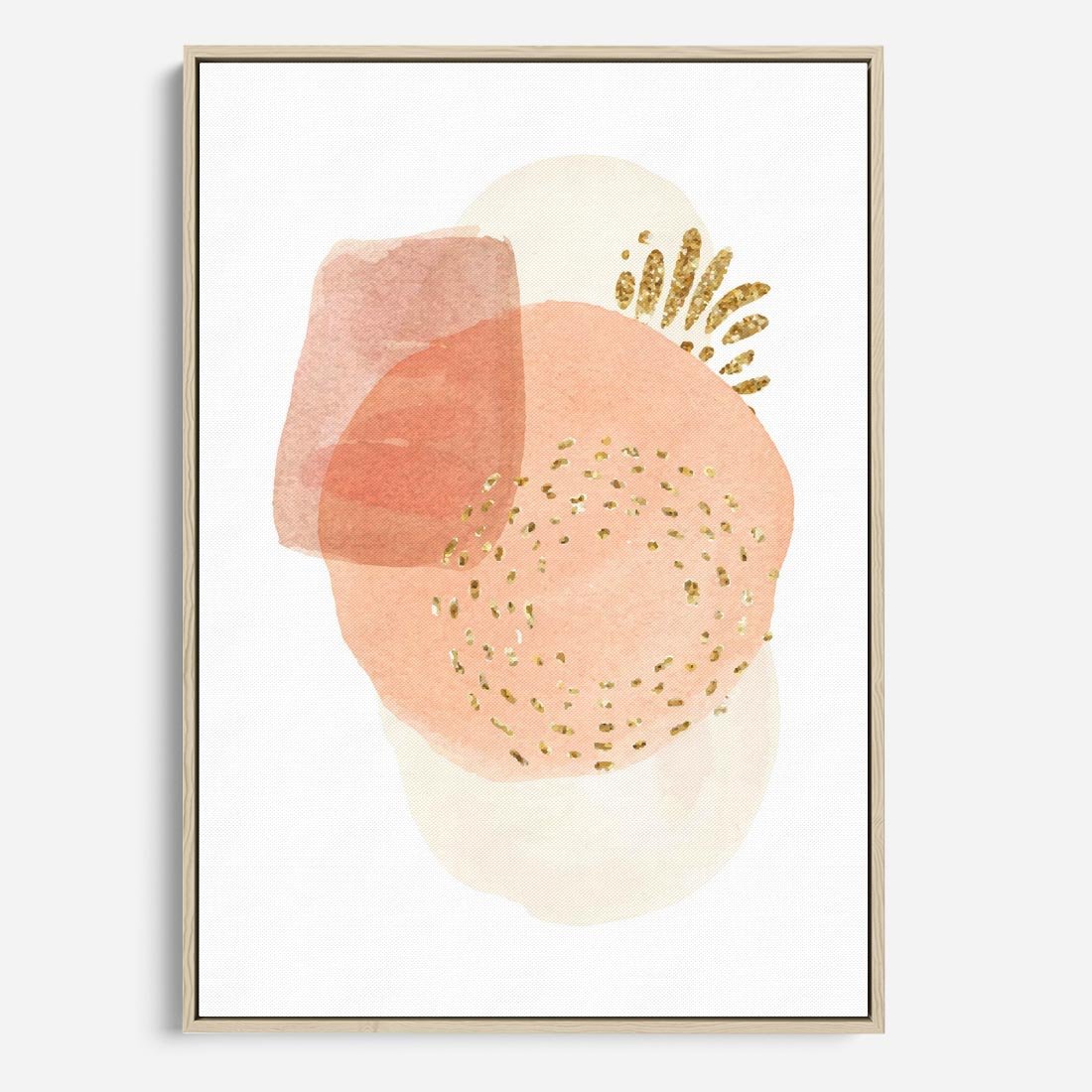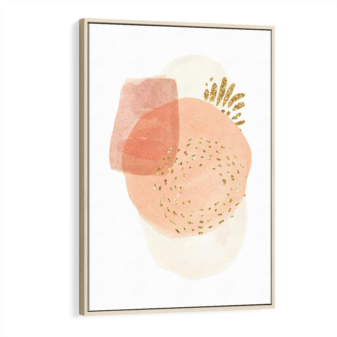Minimalistyczna kompozycja abstrakcyjnych akwarelowych plam w stonowanych pastelach, ozdobiona subtelnie złotymi elementami. To wyrafinowane dzieło sztuki, które w prostocie wyraża piękno i harmonię.
