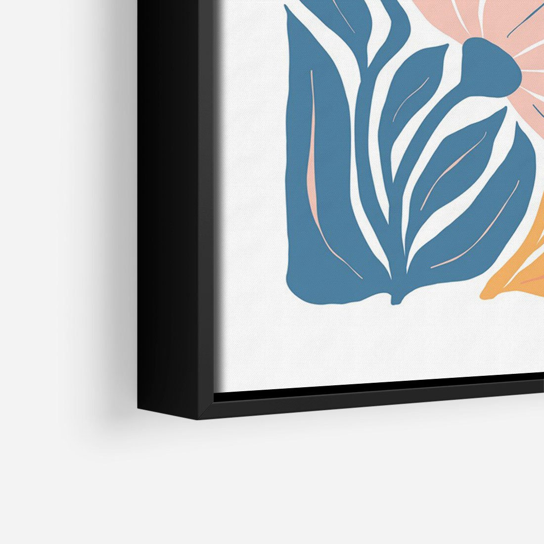 Ten minimalistyczny plakat ukazuje kwiaty i rośliny w delikatnych pastelowych odcieniach, tworząc harmonijną kompozycję. Sztuka ta emanuje spokojem i równowagą natury, dodając subtelnej estetyki do przestrzeni.