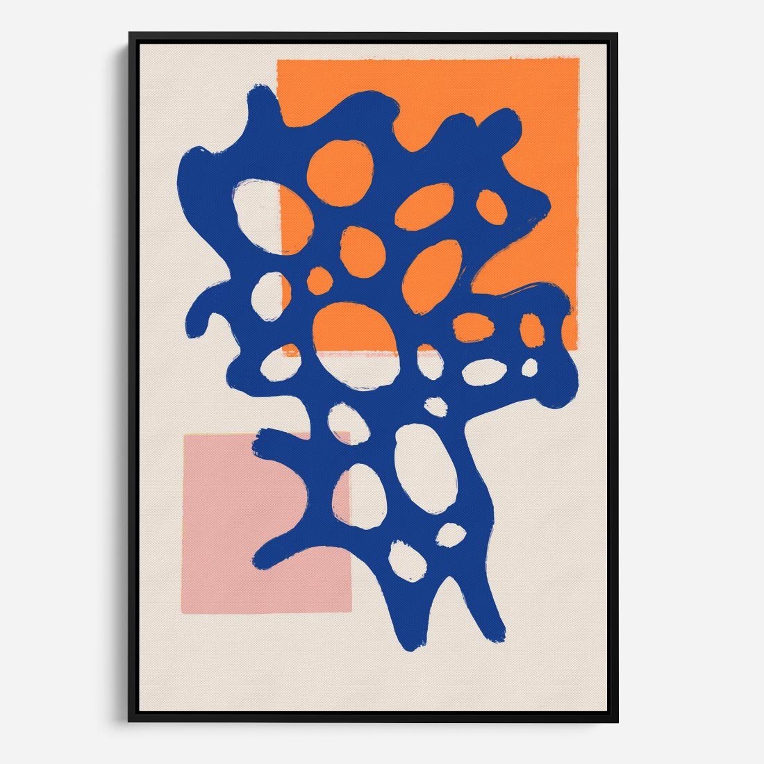 Ten nowoczesny plakat przedstawia abstrakcyjną niebieską formę o dziwnych kształtach na delikatnym, pastelowym tle. Kompozycja ta przyciąga wzrok swoją unikalnością i minimalistycznym stylem, doskonale pasując do nowoczesnych wnętrz.