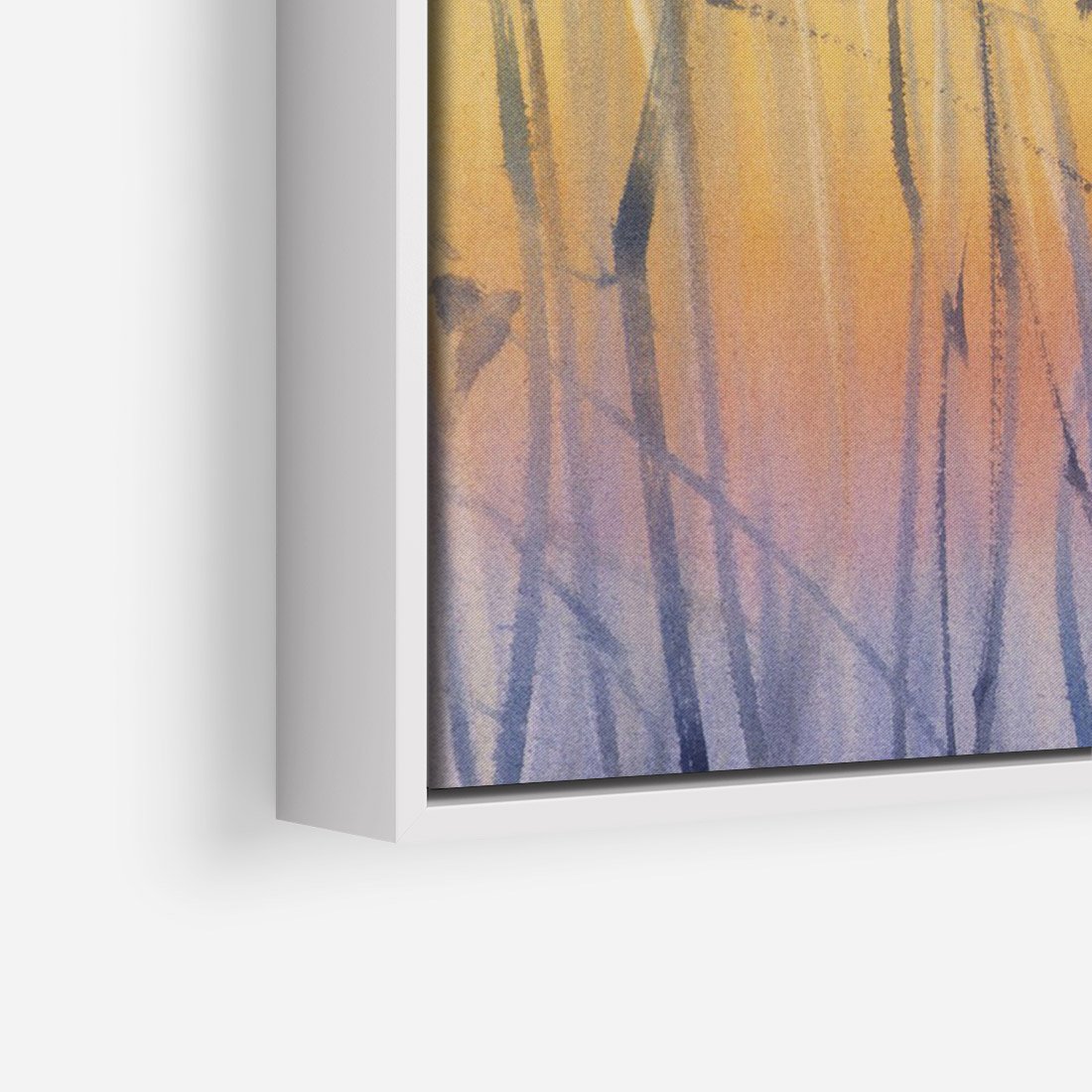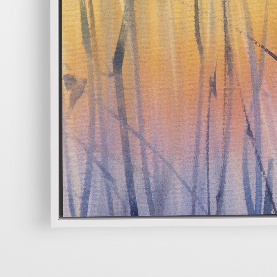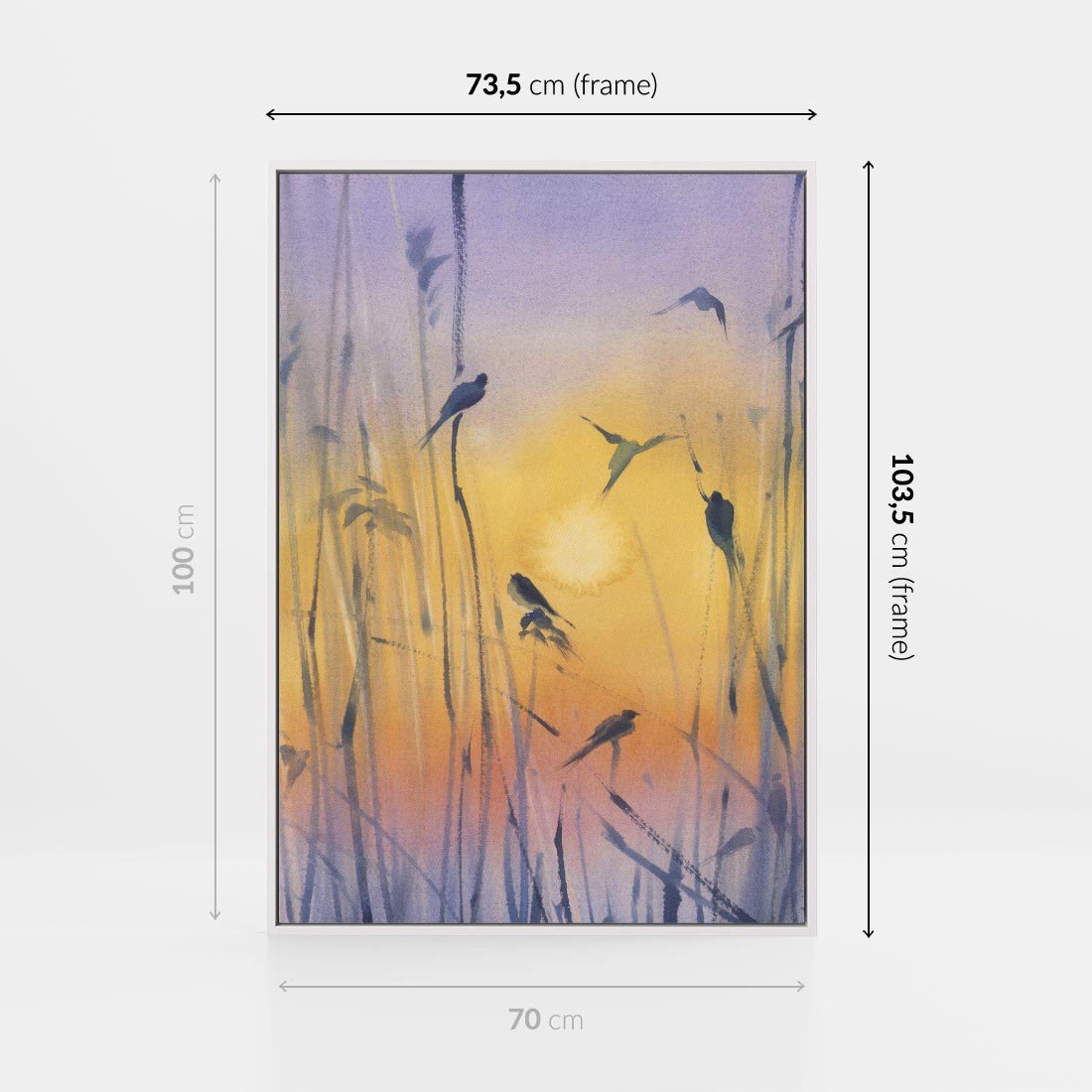 Obraz w ramie 70x100 - Mistyka Poranka nad Szuwaram - wschód słońca w szuwarach, trawy - rama biała