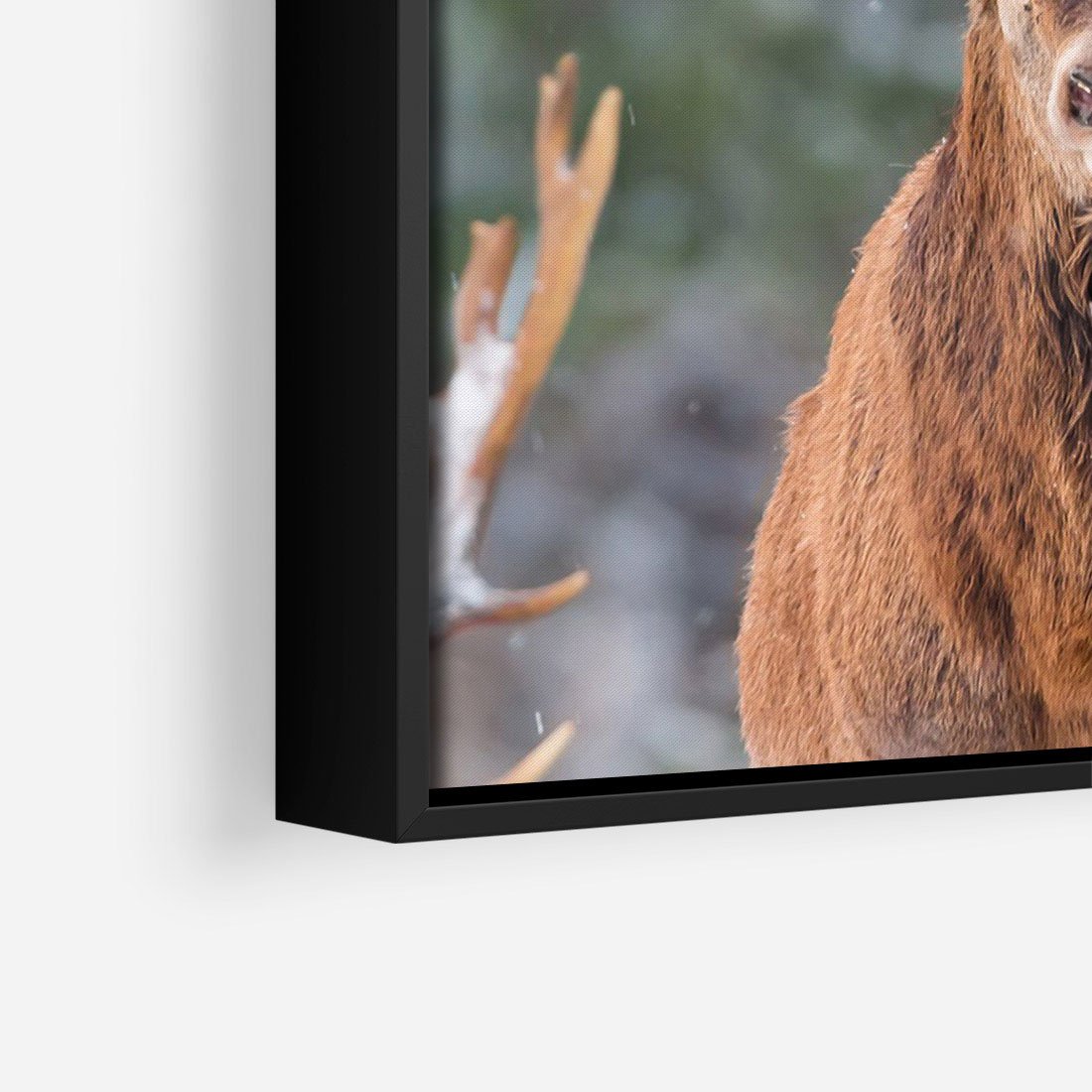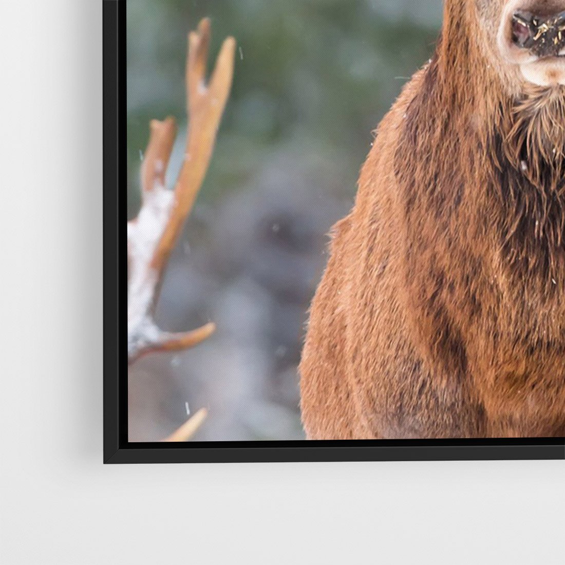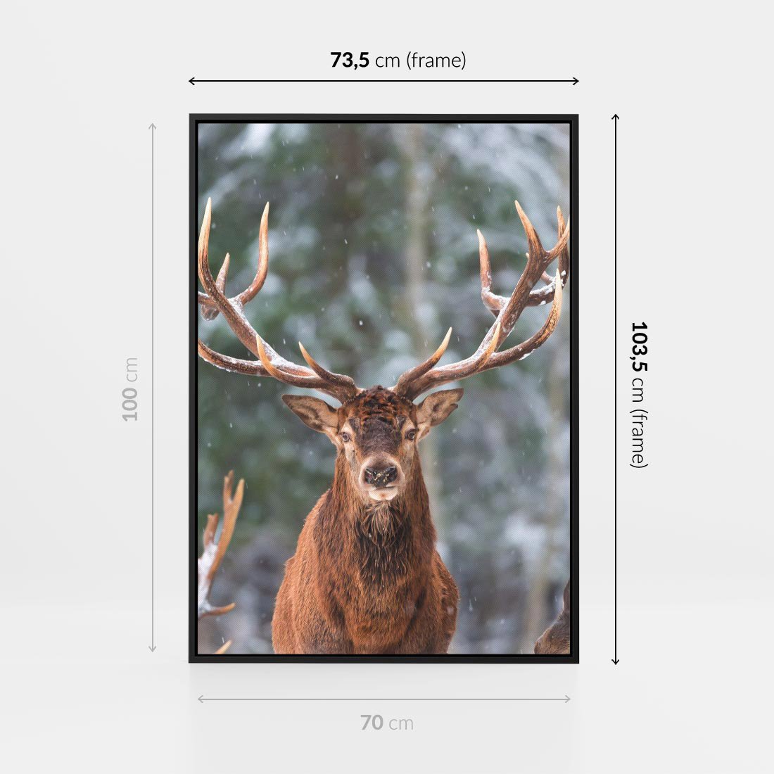 Obraz w ramie 70x100 - Monarcha Zimowej Dziczy - jeleń, zima - rama czarna