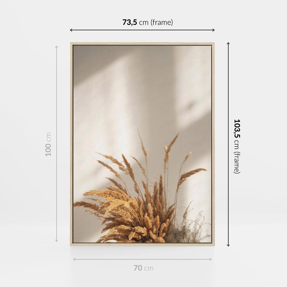 Obraz w ramie 70x100 - mpresyjne układy traw - boho, trawy - rama drewno