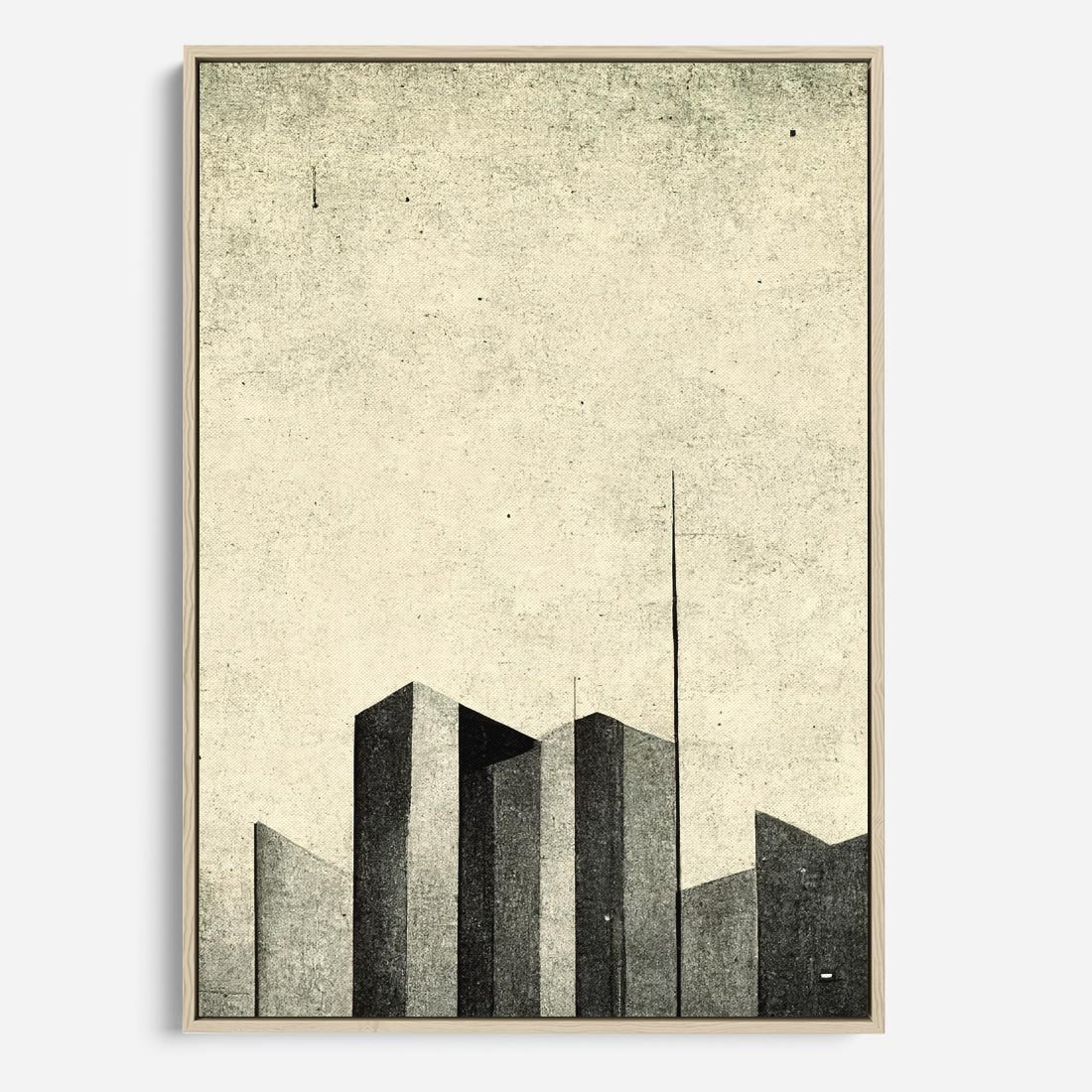 To fascynujące dzieło sztuki ukazuje postarzaną grafikę, gdzie perspektywa wieżowców wzbudza uczucie tajemniczości. Czarno-biały klimat dodaje obrazowi surowego charakteru, podkreślając kontrast między przeszłością a współczesnością. Ta grafika zaprasza widza do kontemplacji nad wielowymiarowym światem miejskich struktur i narracji, oczarowując swoim unikatowym stylem.