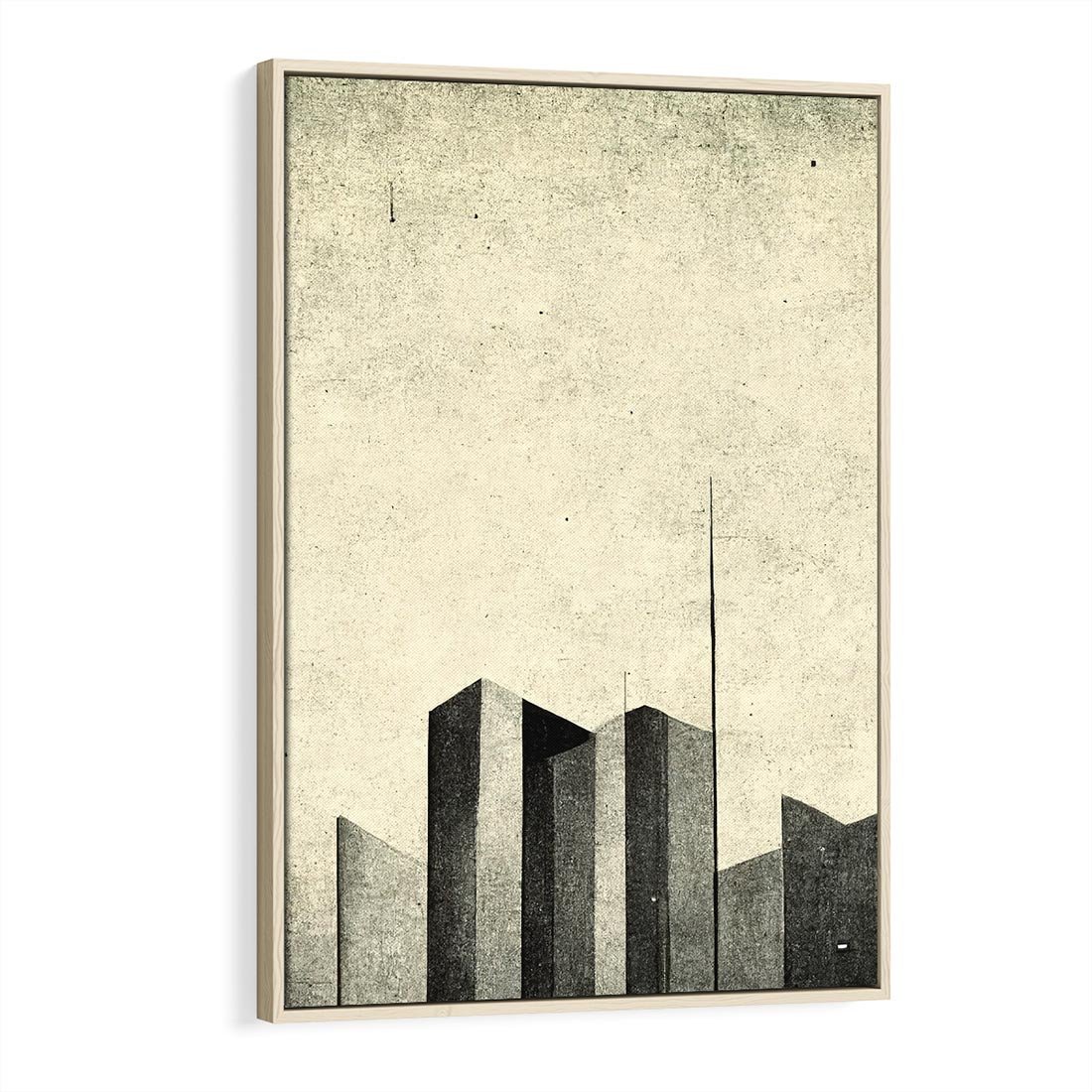 Obraz w ramie 70x100 - Mroczne Wieżowce - postarzana grafika, perspektywa budynków wieżowców - rama drewno