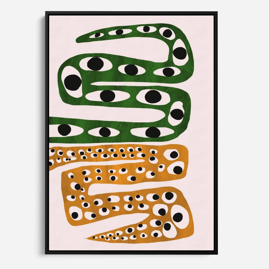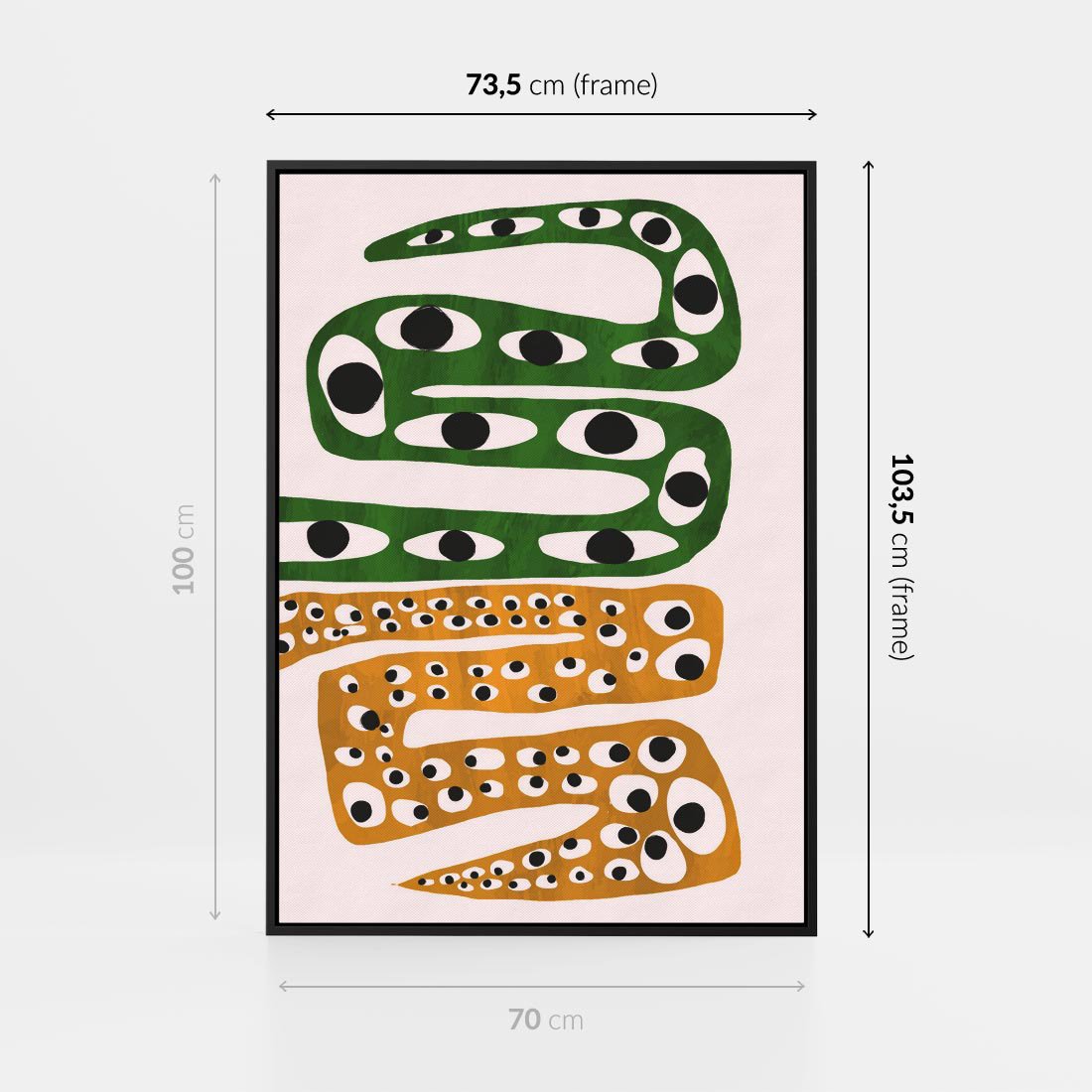 Nasz abstrakcyjny obraz to gra dziwnych kształtów, które przypominają zwinne węże, tańczące w tonacjach żółtego i zielonego. Ta odważna kompozycja wywołuje niezwykłe wrażenie, prowokując do interpretacji i zapraszając do zanurzenia się w nowoczesnej sztuce. To wyjątkowy element dekoracyjny, który wniesie do Twojej przestrzeni energetyczny i zaskakujący akcent.
