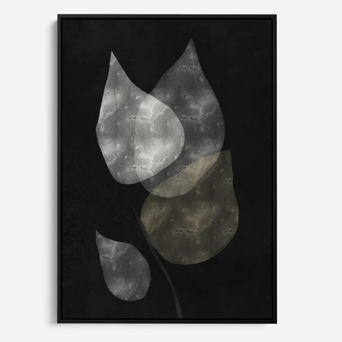 Obraz w ramie 70x100 - Mroczne Złudzenia - abstrakcyjne liście, mroczna atmosfera - rama czarna
