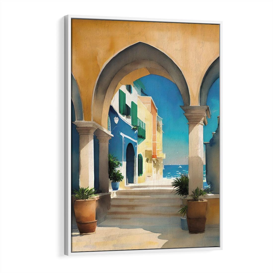 Obraz w ramie 70x100 - Nadmorskie Łuki - akwarela, śródziemnomorski klimat - rama biała