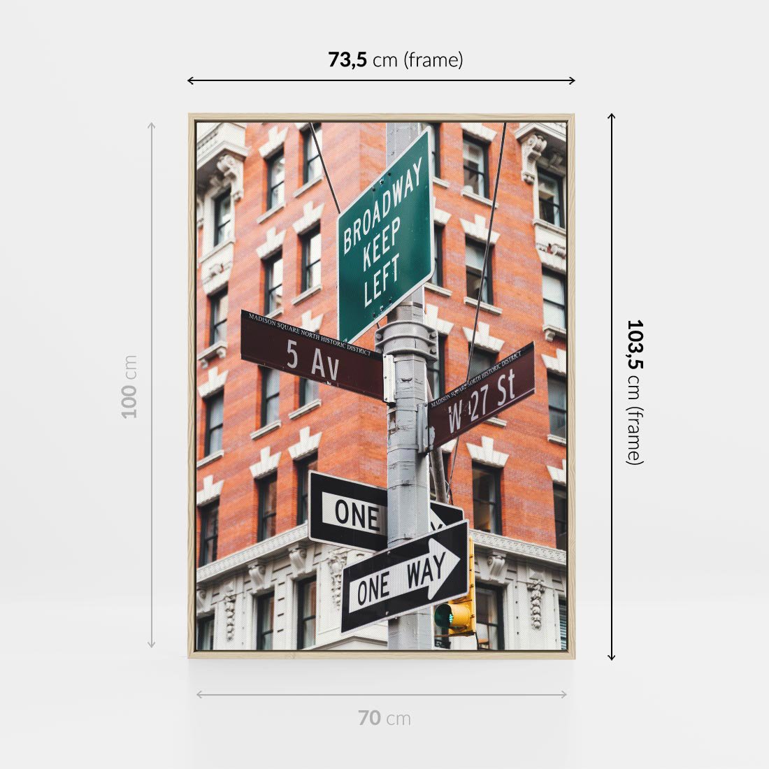 Obraz w ramie 70x100 - Namiastka wielkiego miasta - Nowy Jork, drogowskaz - rama drewno
