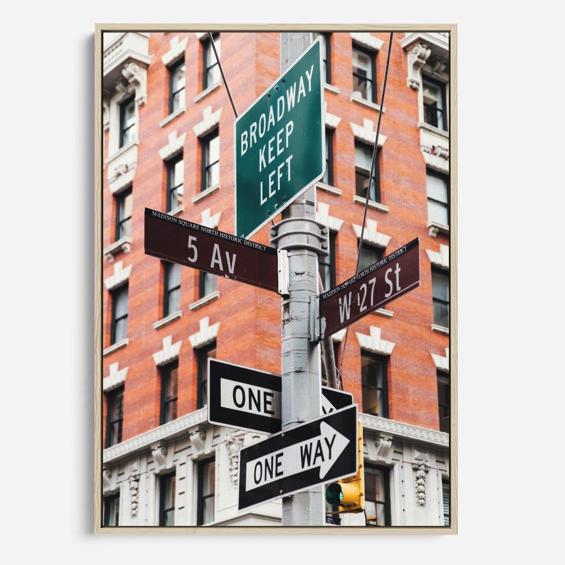 Poczuj atmosferę Nowego Jorku za pomocą obrazu przedstawiającego drogowskaz. Przenieś się w świat metropolii i dodaj do swojego wnętrza nutkę miejskiego stylu.